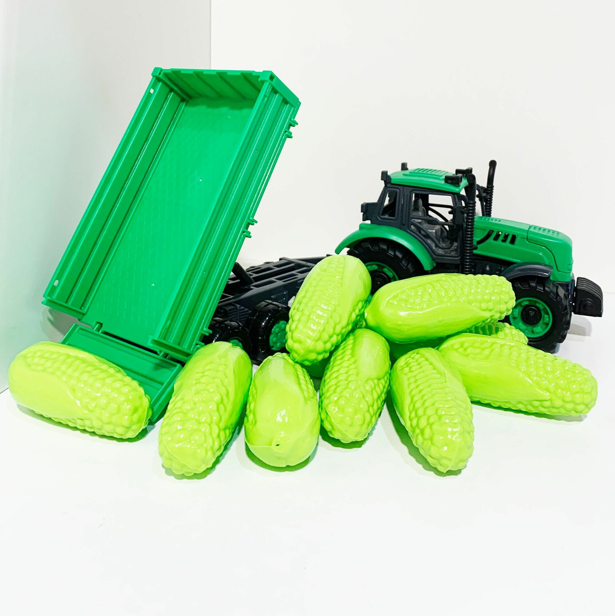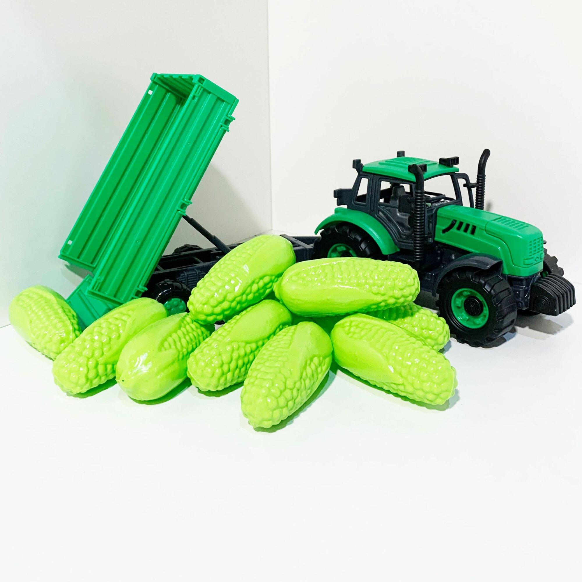 Обучающий набор - счетный материал кукуруза (10 шт.) + трактор с бортовым прицепом (37 см, инерция, подвижные элементы) / Полесье - зеленый интересное: