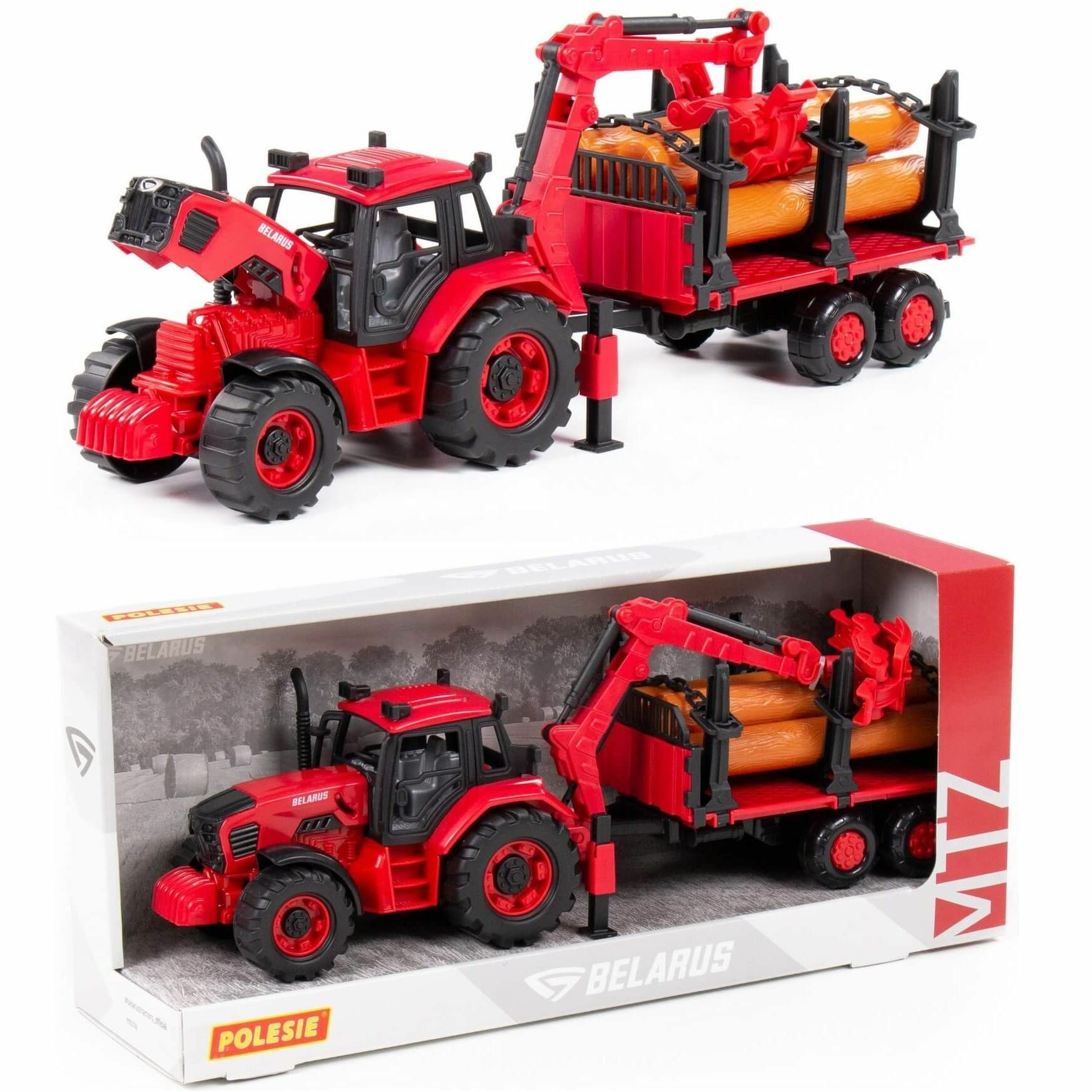 Инерционный трактор с бортовым прицепом и 10-ю мини овощами и фруктами / Полесье