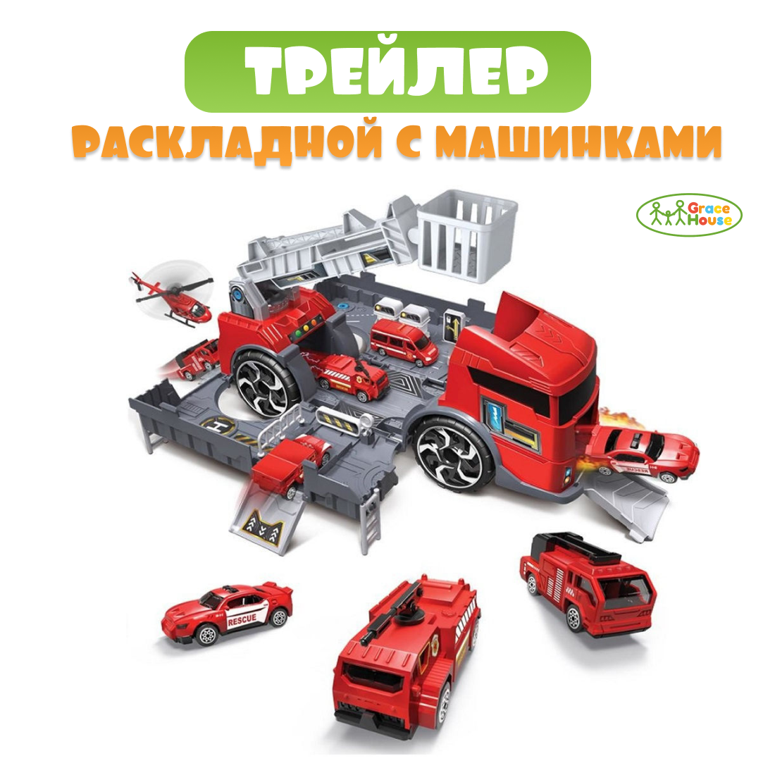 Раскладной Трейлер с машинками GRACE HOUSE красный интересное: