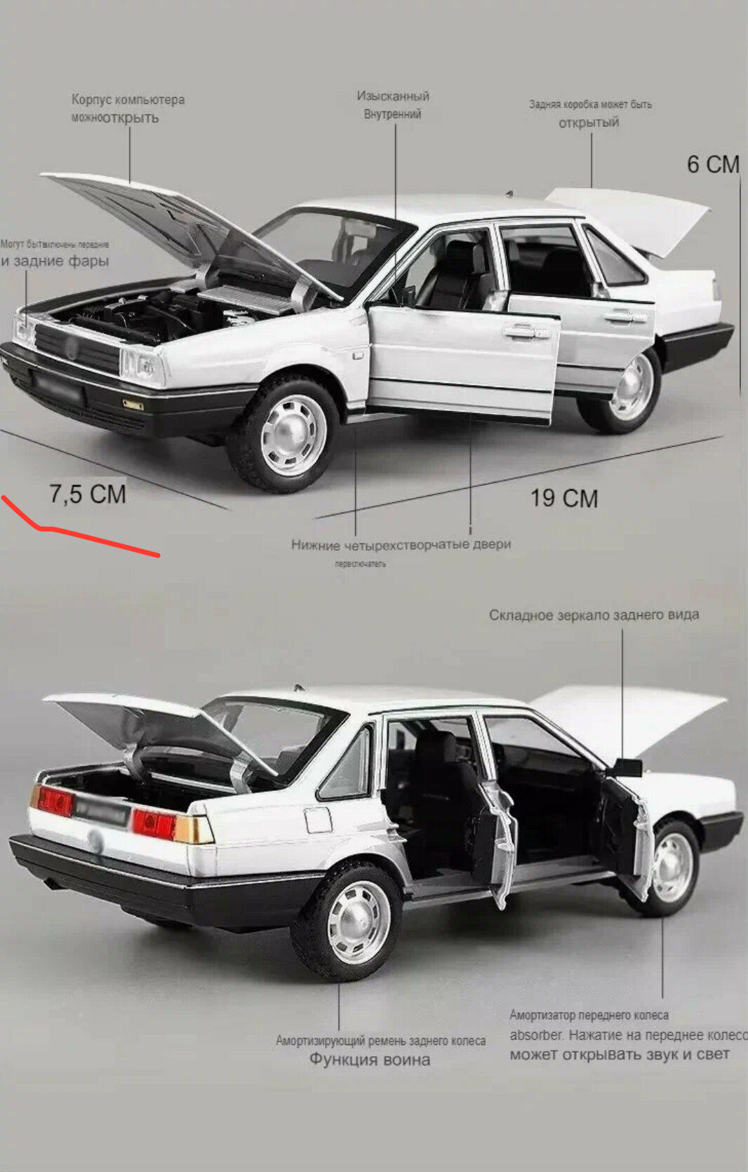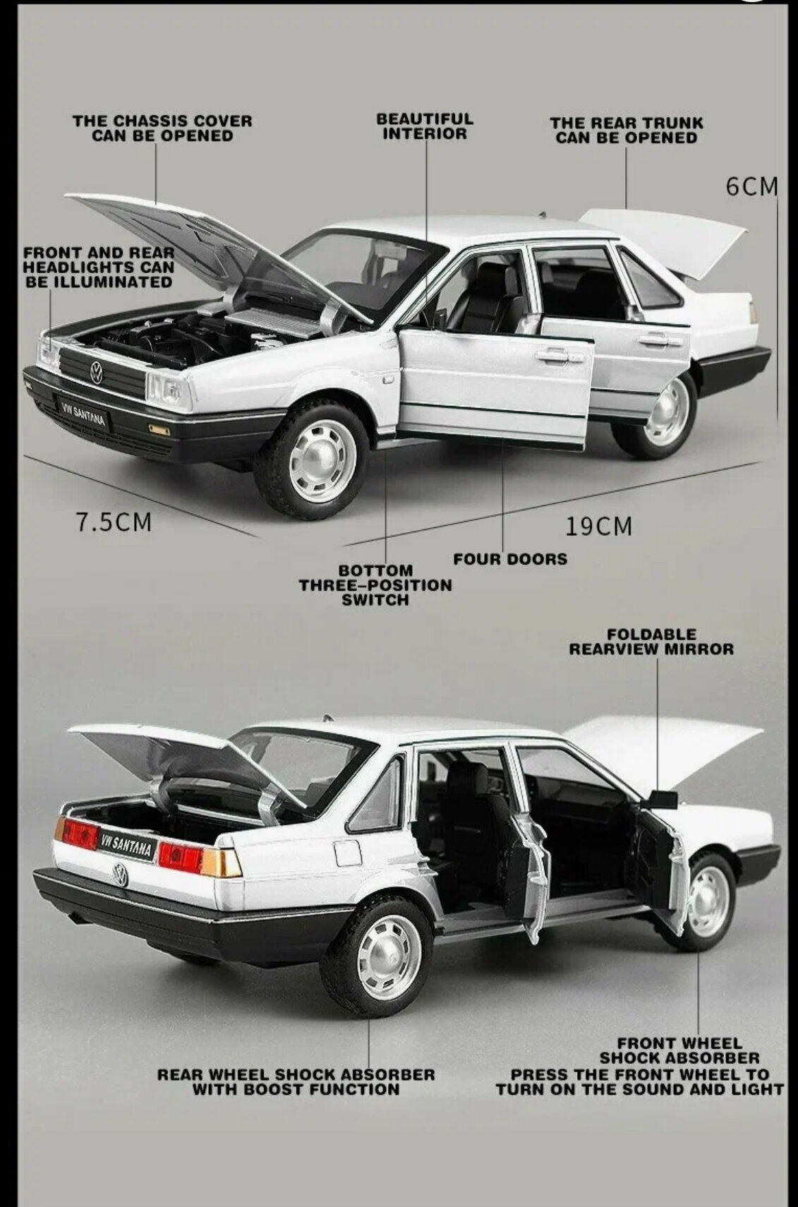 Коллекционная масштабная модель Volkswagen Santana 1983 1:24 (металл, свет, звук) интересное: