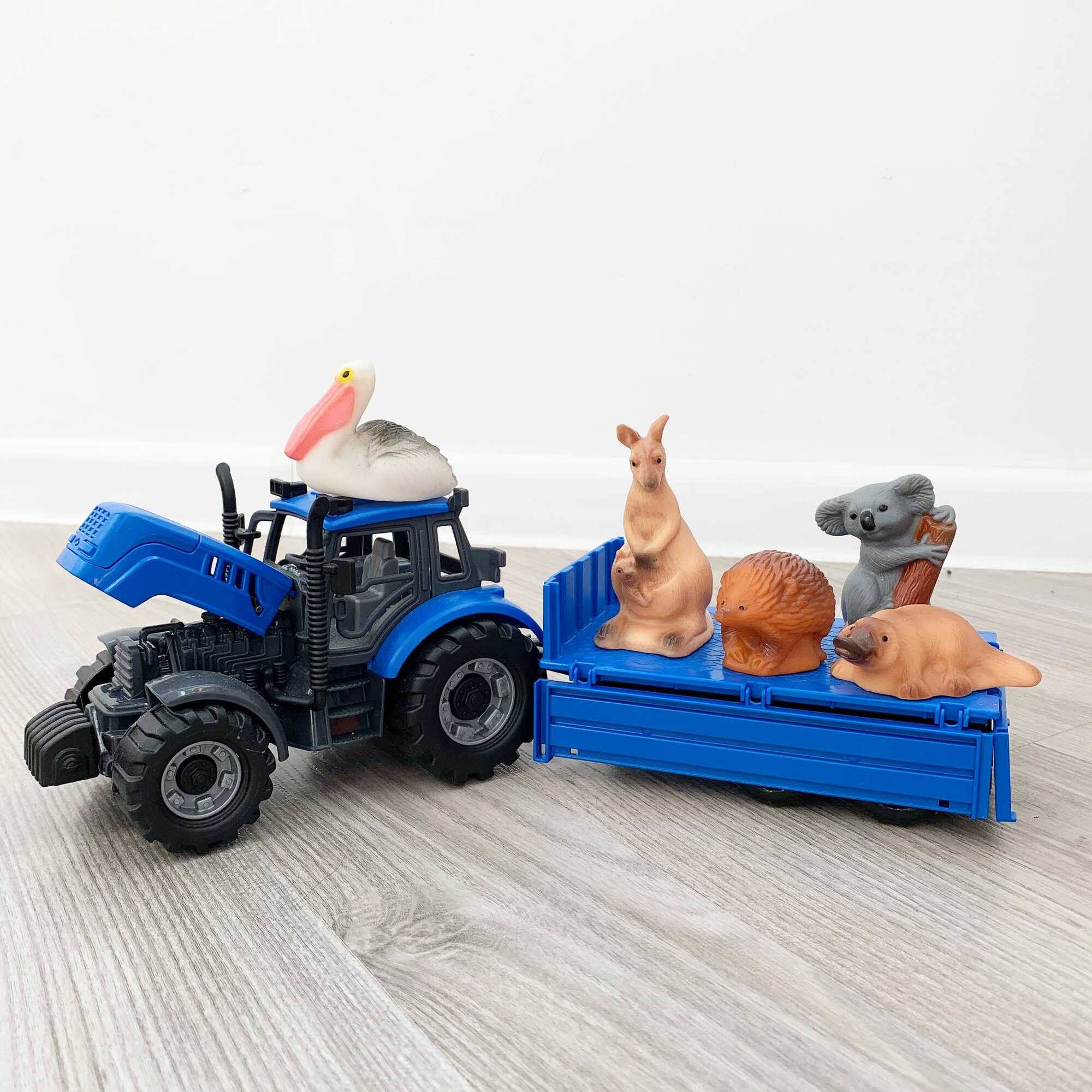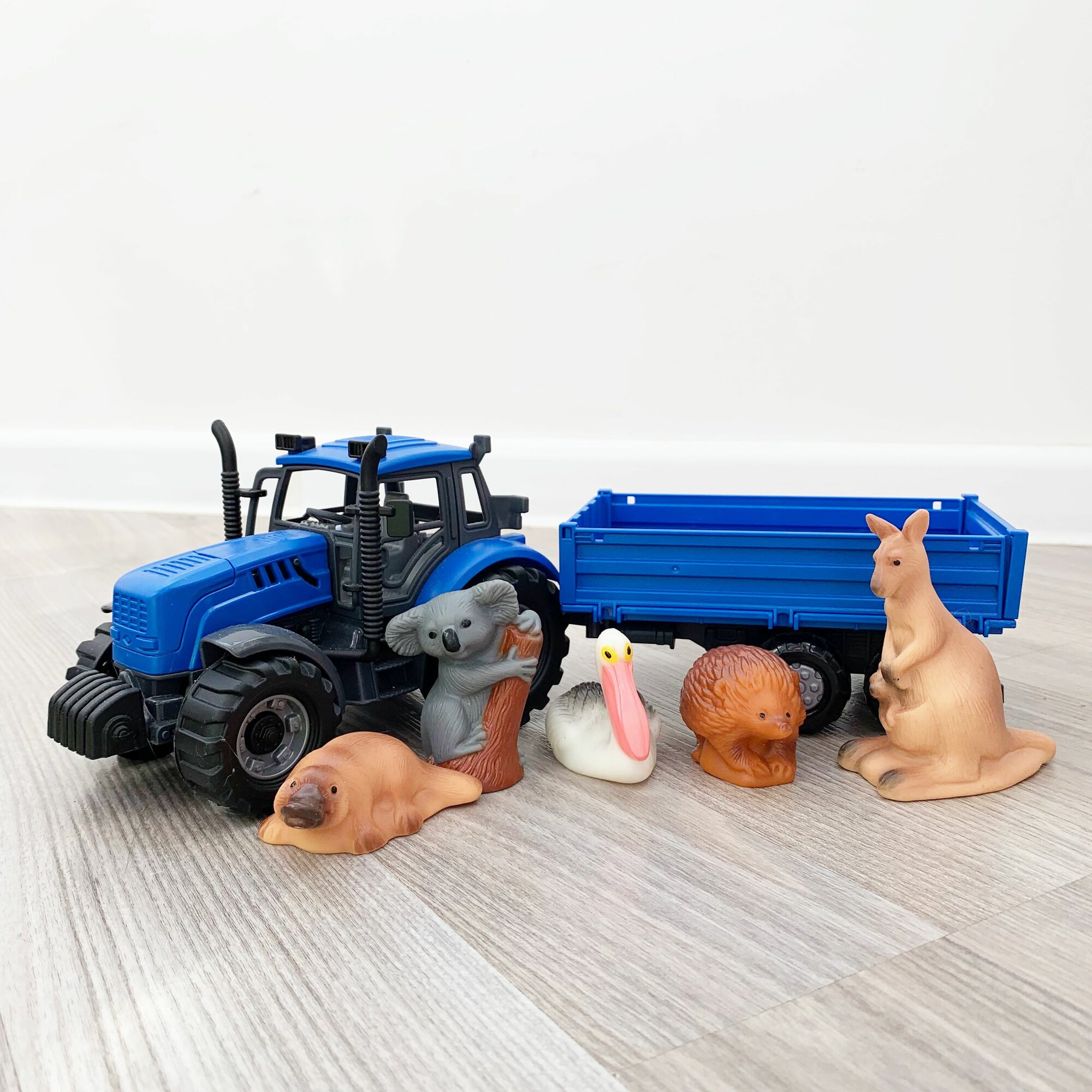Набор инерционный трактор с прицепом и 5 фигурок животных Австралии / Полесье (синий) интересное: