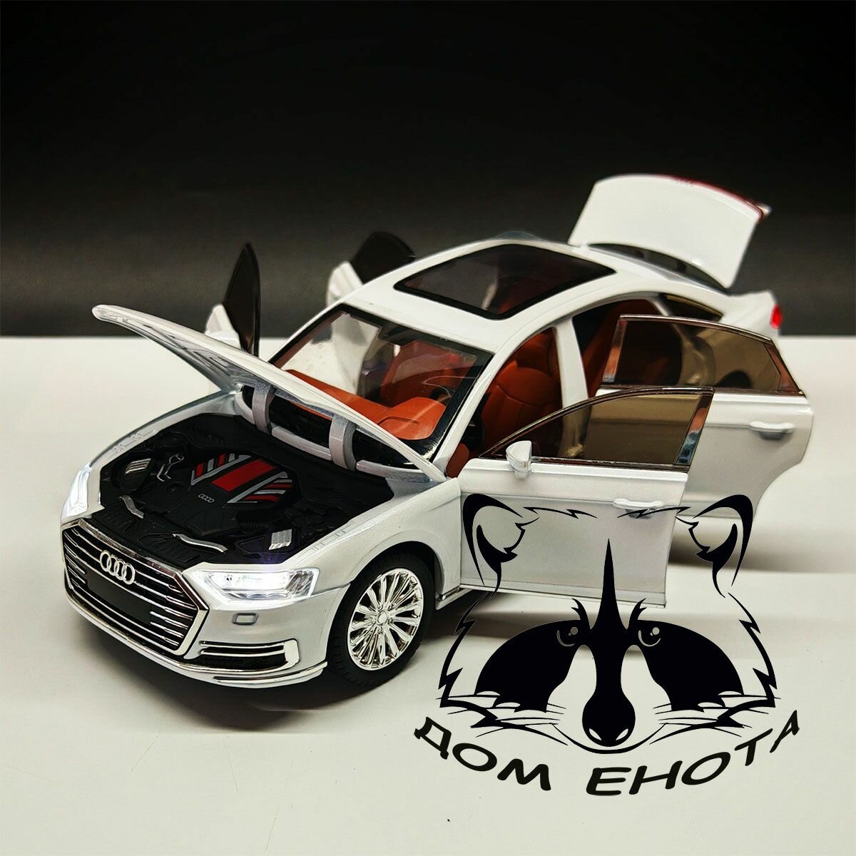 СохранитьМашинка AUDI A8. Металлическая модель автомобиля Ауди А8 белый 20см. Инерционная игрушка машина 1:24 интересное:
