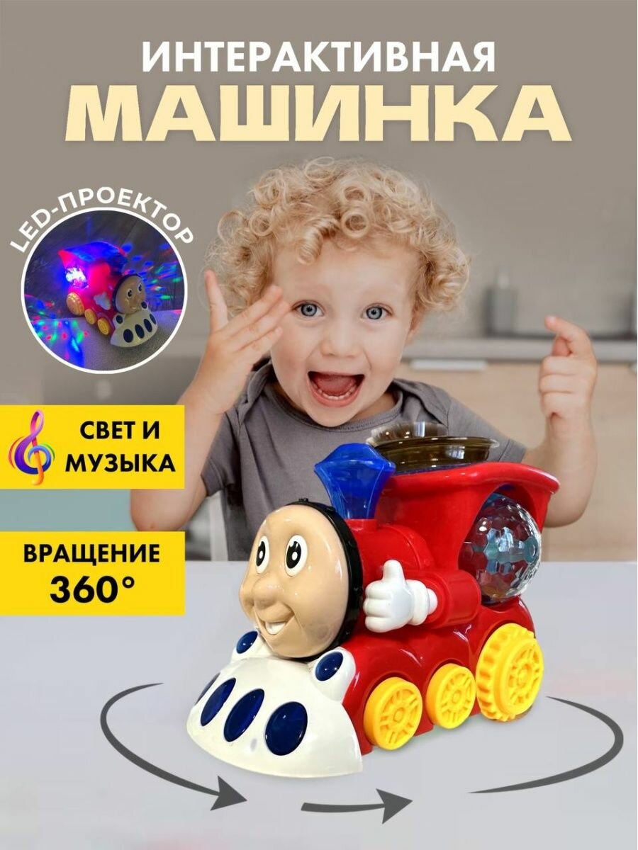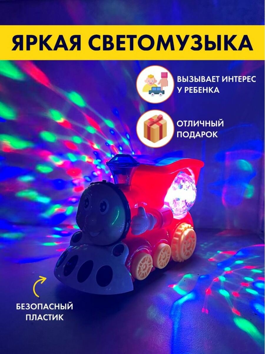 Музыкальная игрушка Паровозик диско шар, паровозик диско шар, вращение на 360 градусов, свет и музыка интересное: