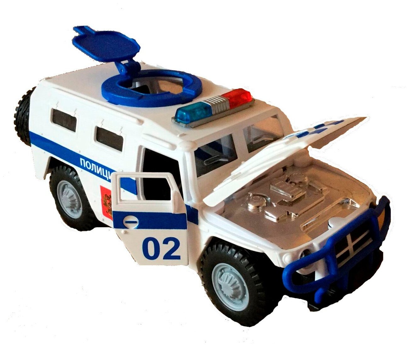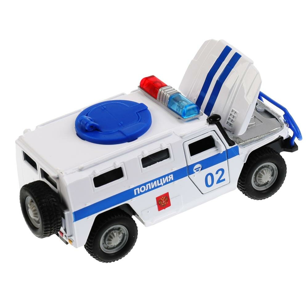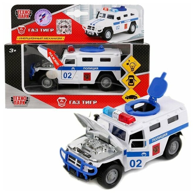 Машинка Технопарк модель ГАЗ Тигр Полиция свет, звук, откр. двери интересное: