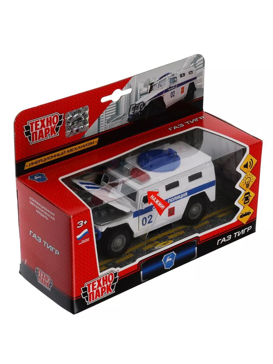 Купить Машинка Технопарк модель ГАЗ Тигр Полиция свет, звук, откр. двери