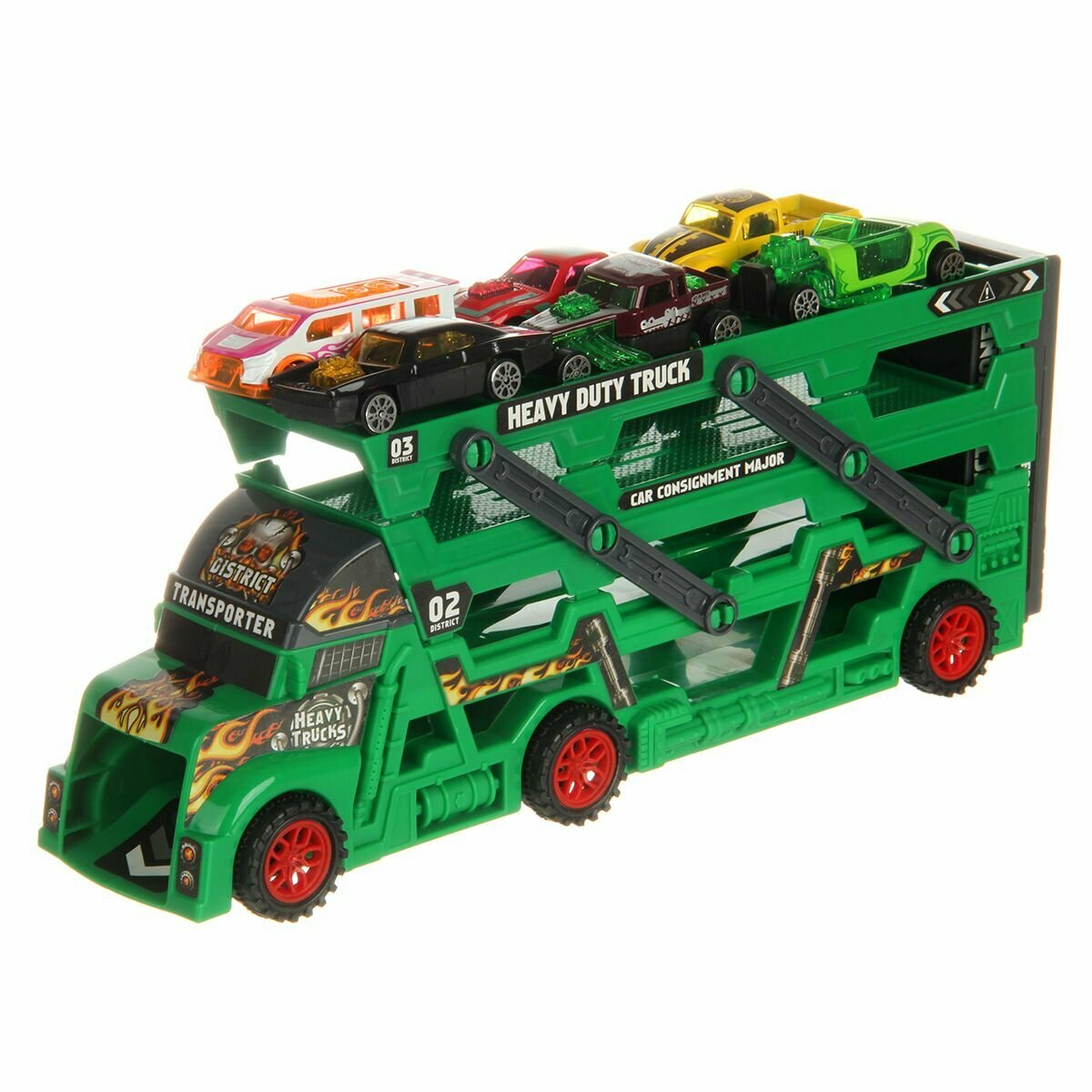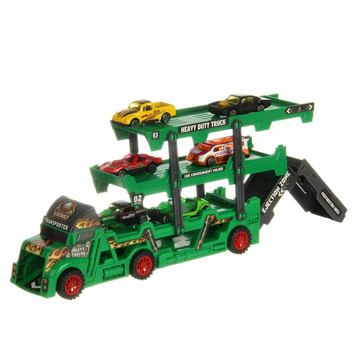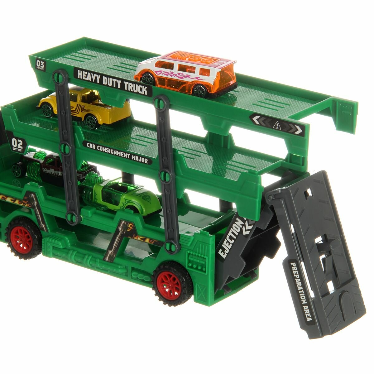 Купить Детский автовоз Veld Co, с машинками и катапультой, темно-зеленый