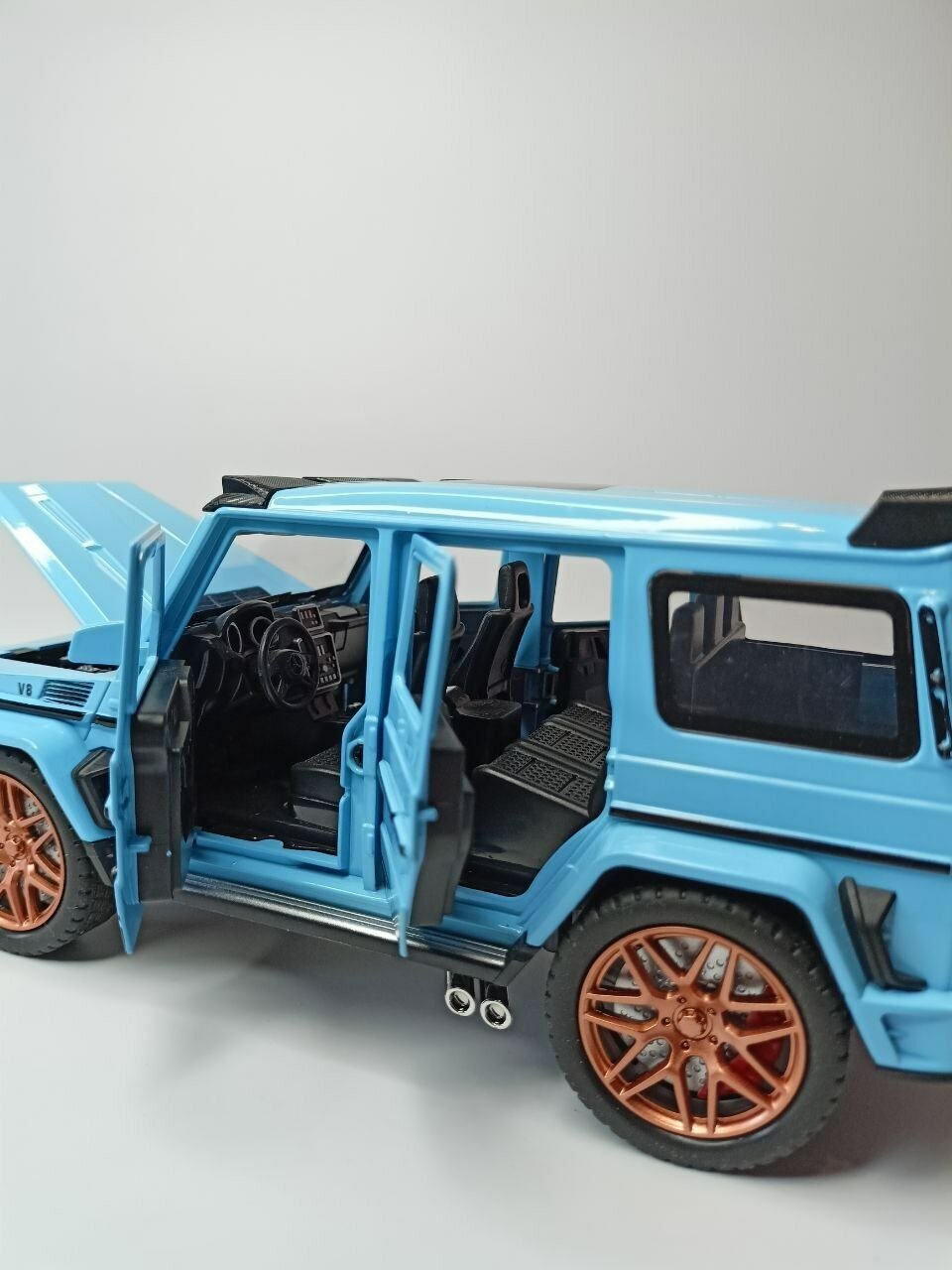 Модель автомобиля Мерседес Гелендваген с дымом коллекционная металлическая игрушка масштаб 1:24 голубой интересное: