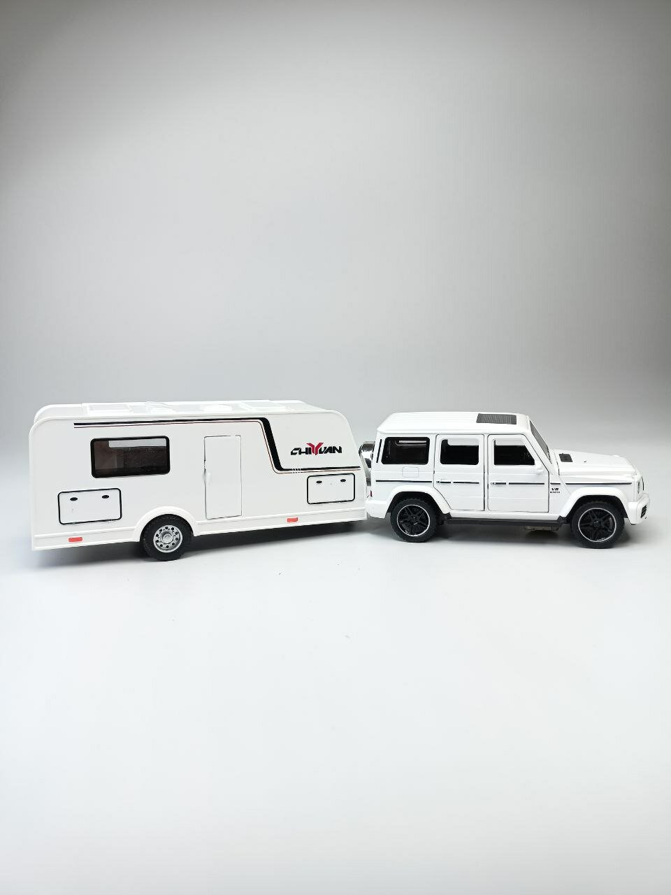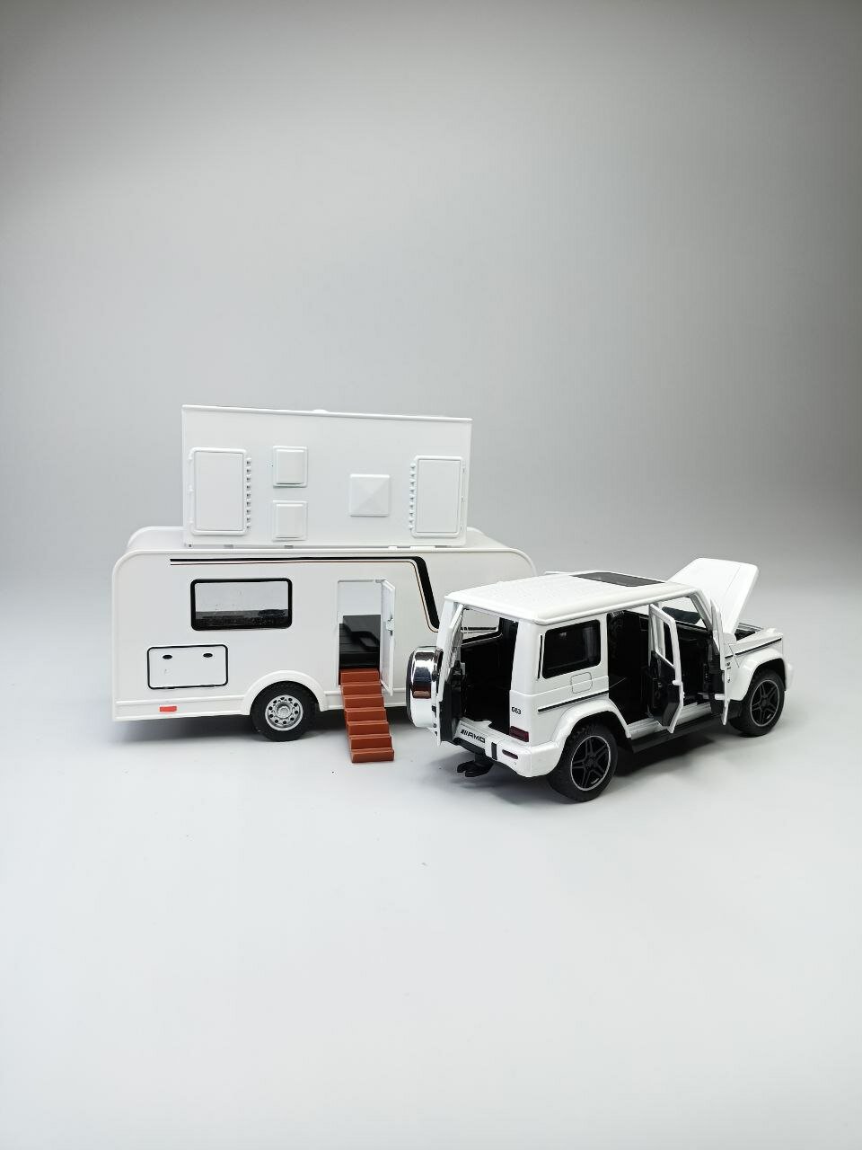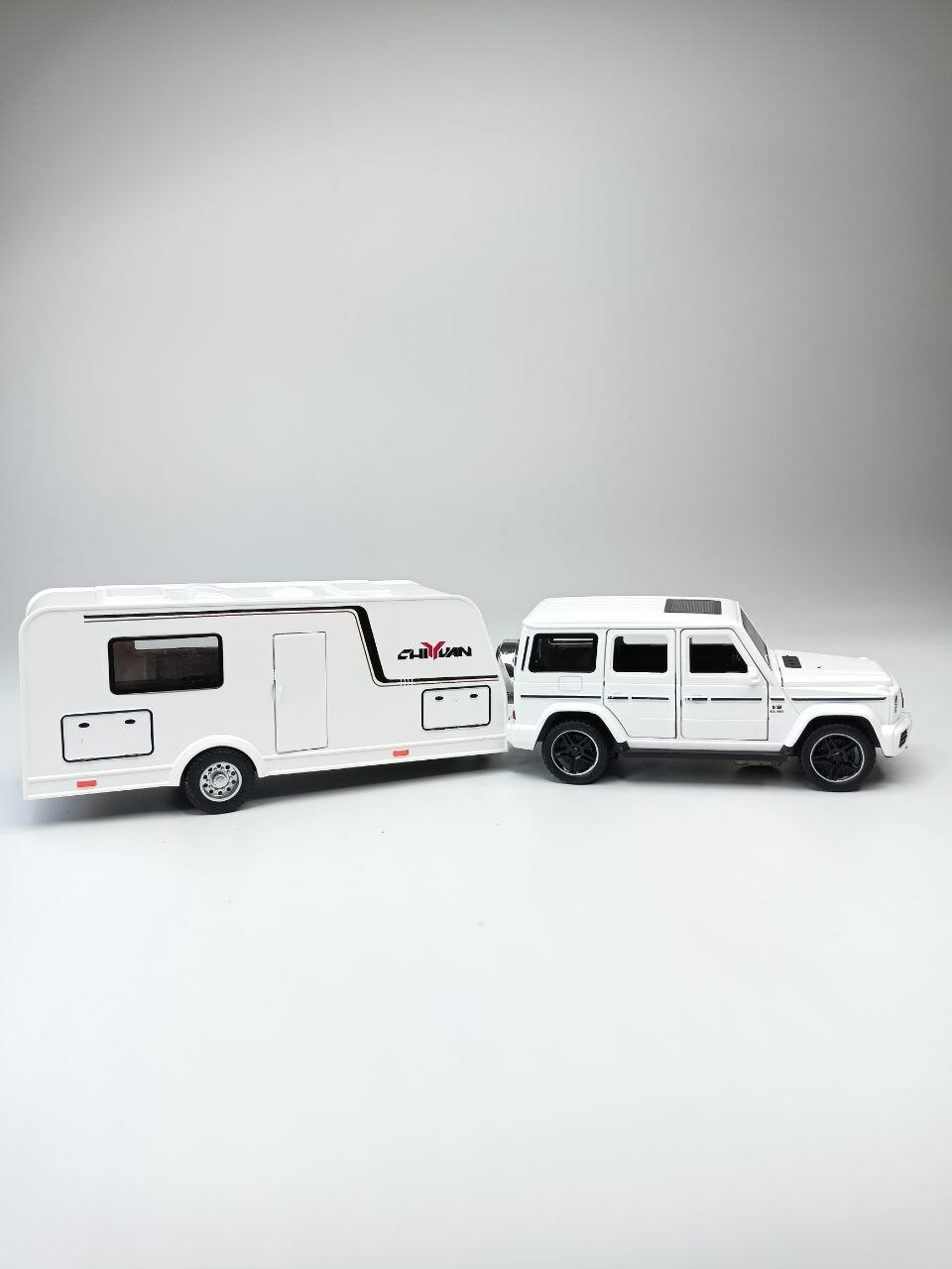 Купить Модель автомобиля Мерседес Гелендваген с трейлером коллекционная металлическая игрушка белый