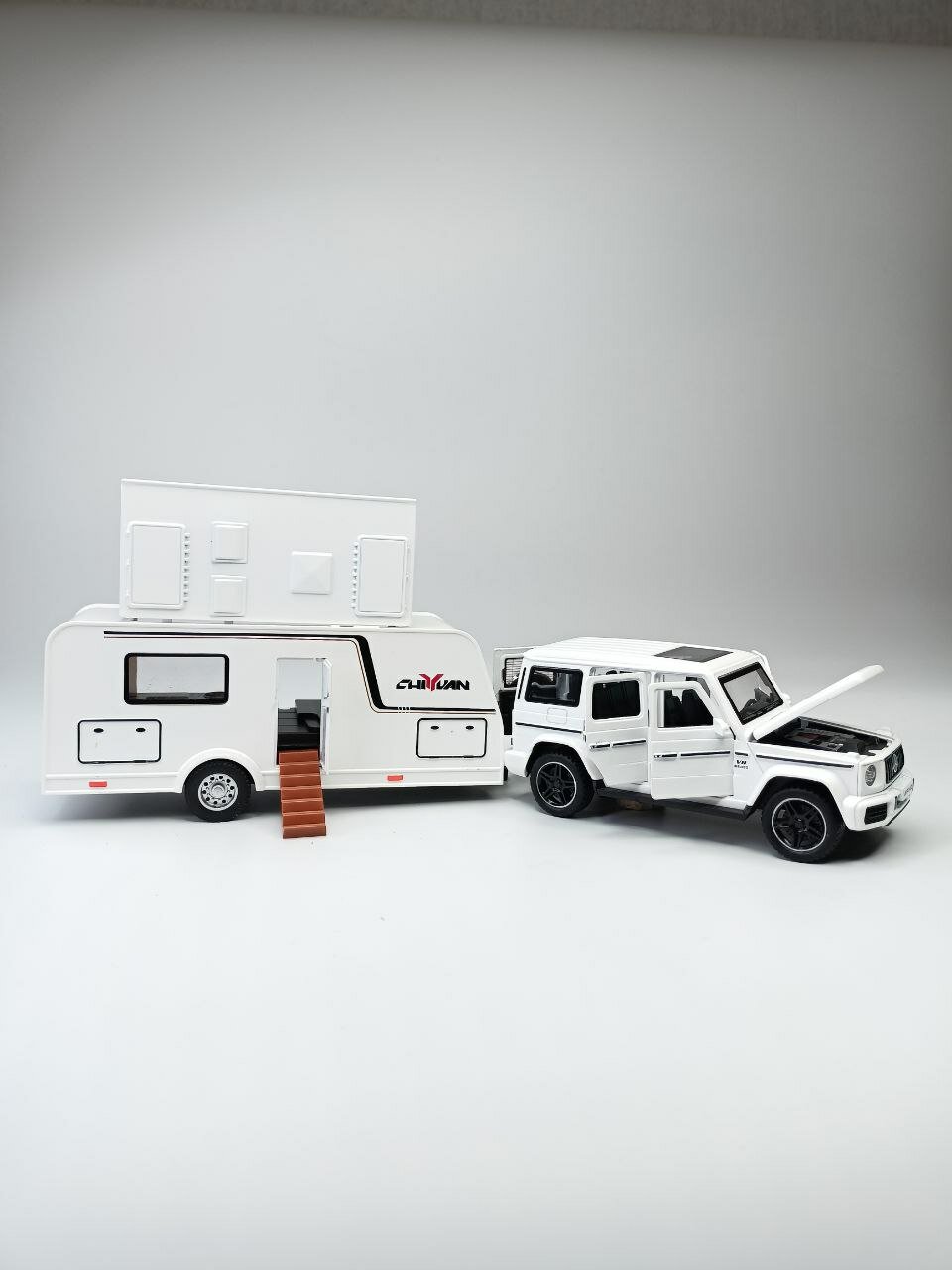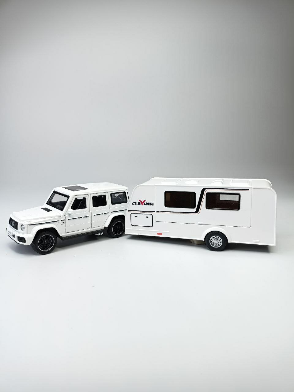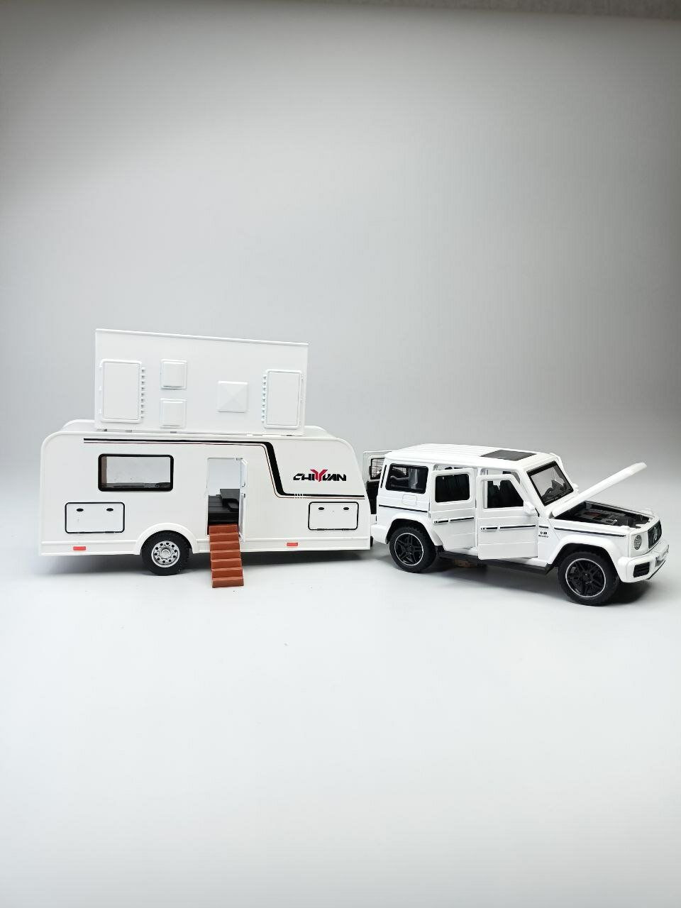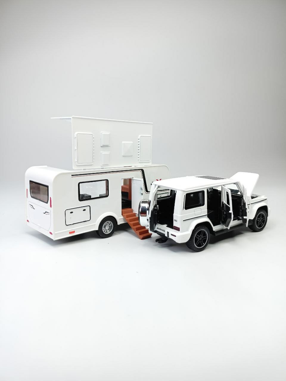 Купить Модель автомобиля Мерседес Гелендваген с трейлером коллекционная металлическая игрушка белый