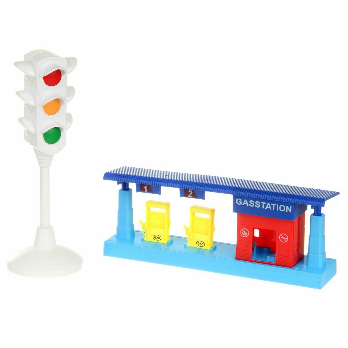 Набор для игры "Поезд" Veld Co, инерционные локомотивы, вагоны, светофор и бензоколонка интересное:
