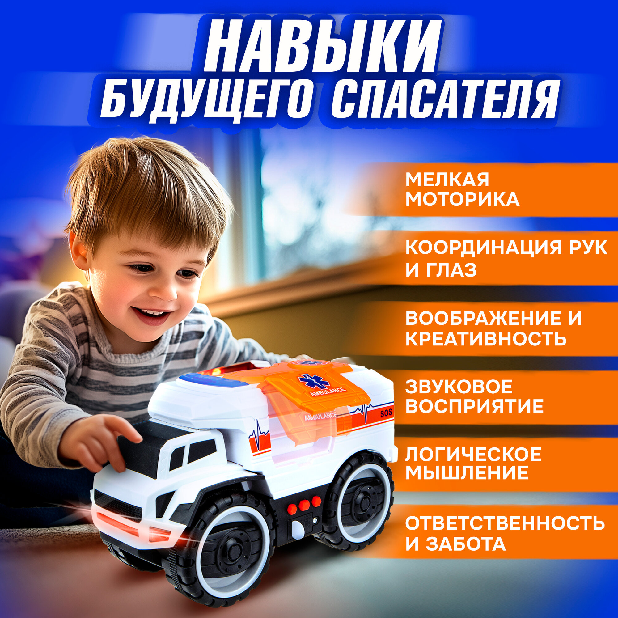 Купить Скорая помощь машинка 1TOY Экстренные службы грузовик со светом и звуком