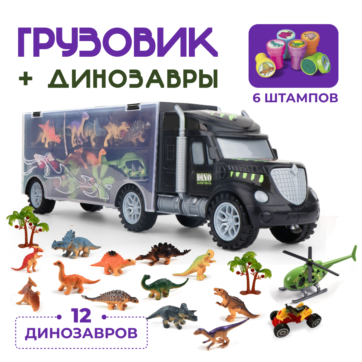 Купить Автовоз с динозаврами TrendToys игровой набор для мальчика, фигурки динозавров 12 штук