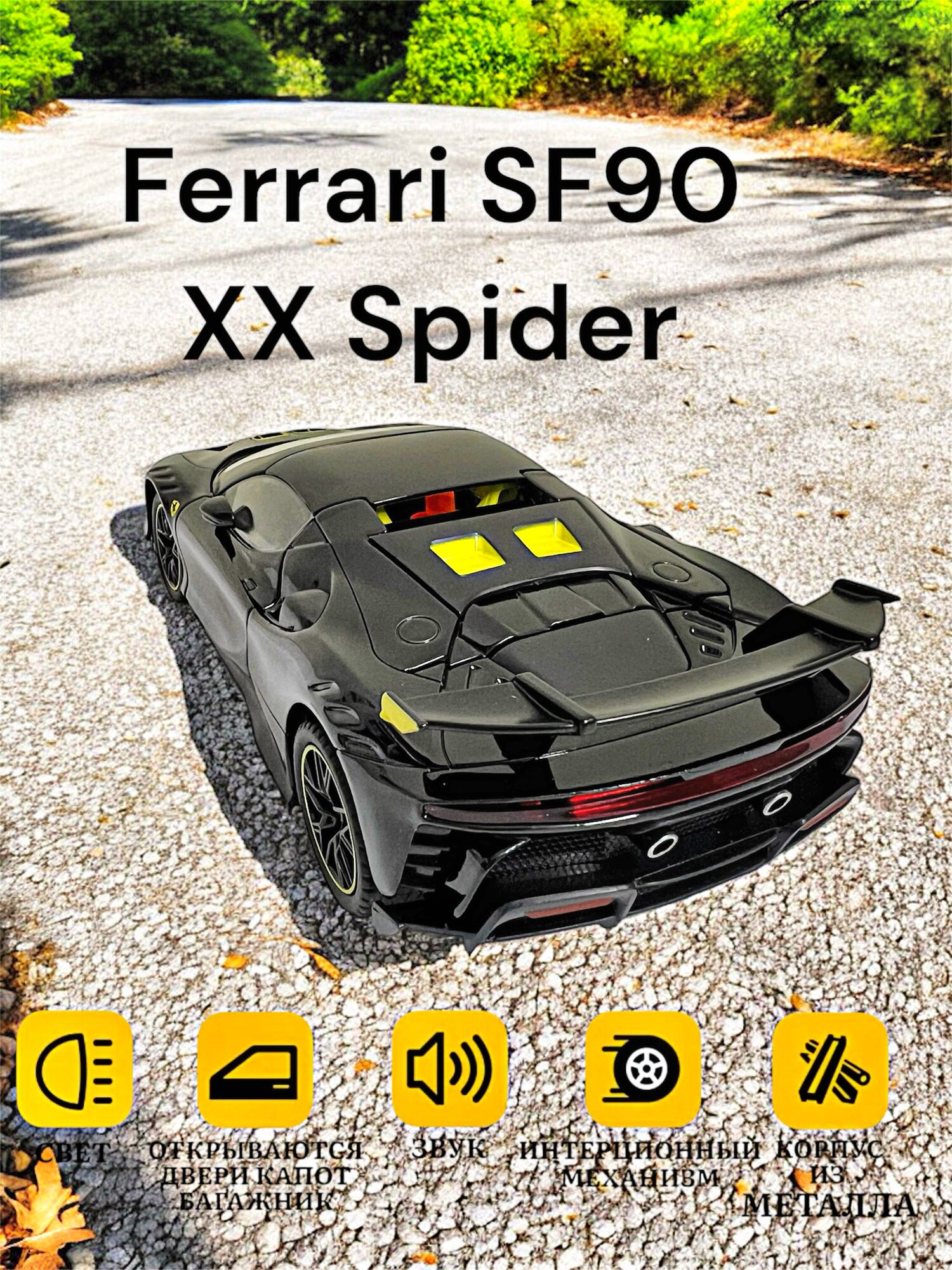 Коллекционная масштабная модель Ferrari SF90 XX Spider 1:24 (металл, свет, звук) интересное: