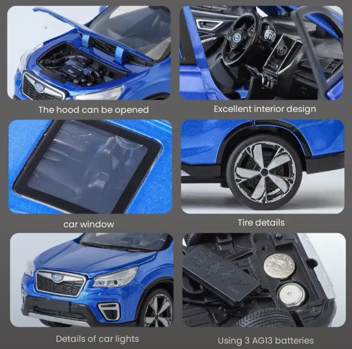Коллекционная масштабная модель Subaru Forester Vl 1:32 (металл, свет, звук) интересное: