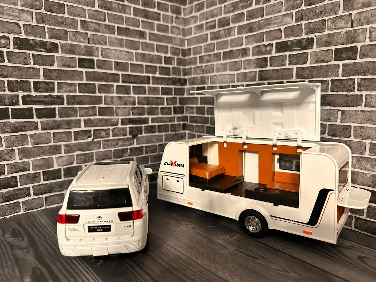 Купить Машинка металлическая "Toyota Land Cruiser 300" белый с домом 1:32 с прицепом, дом на колёсах свет+звук инерционный/ + подарок