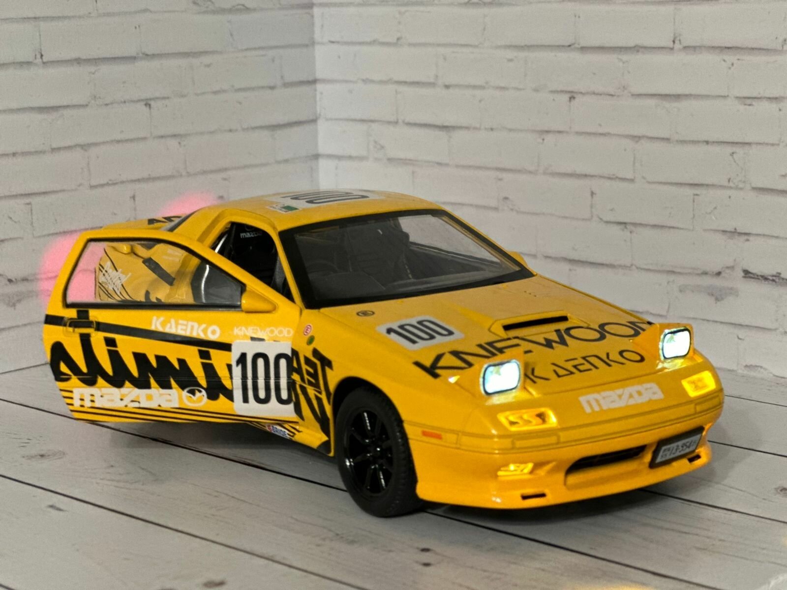 СохранитьМашинка металлическая коллекционная "Mazda RX-7" желтая, свет+звук инерционный/ в подарок брелок интересное: