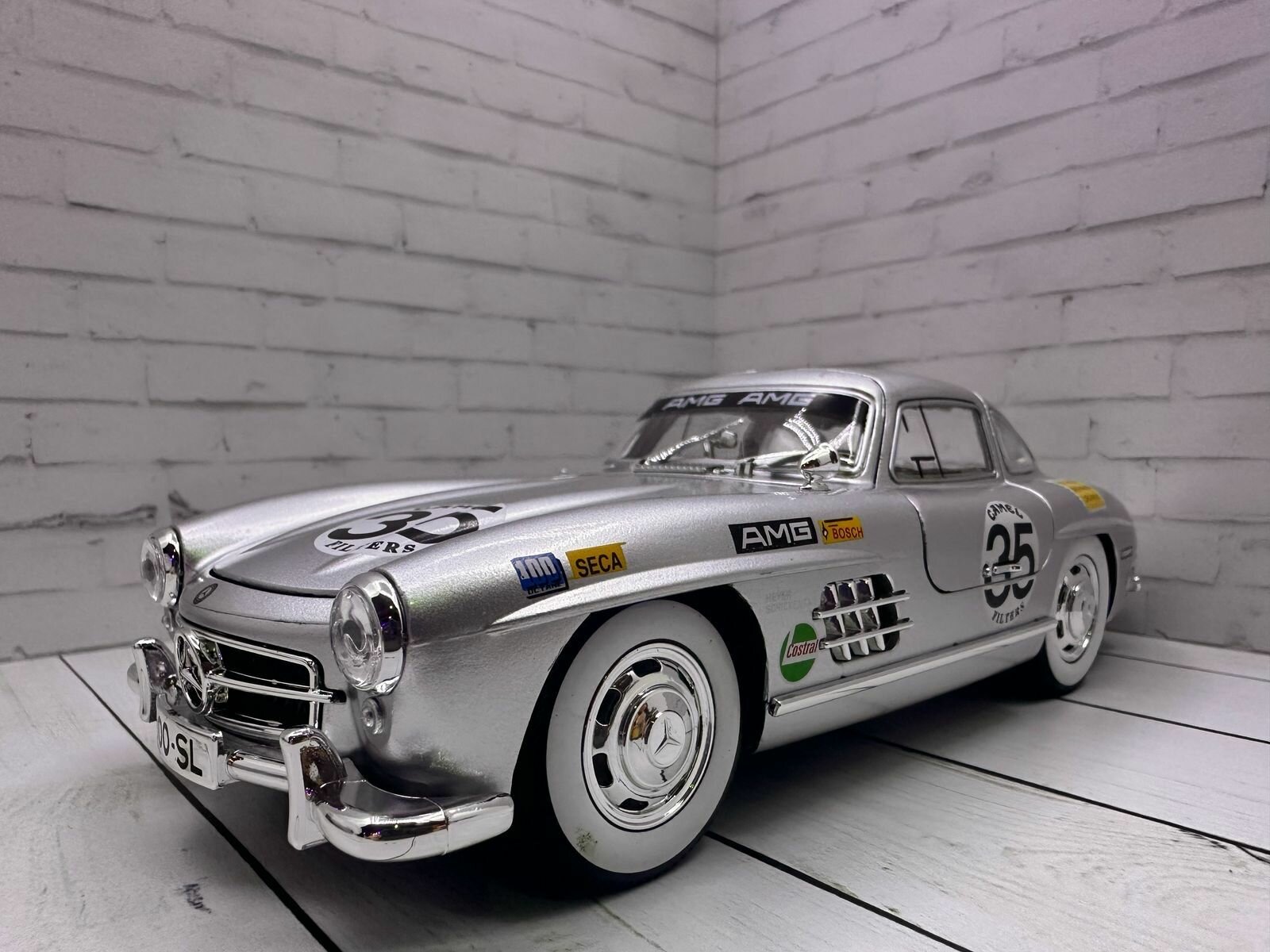 Купить Машинка металлическая коллекционная "Mercedes-Benz SL300" серебристый металлик гоночный новинка, свет+звук инерционный/ в подарок брелок