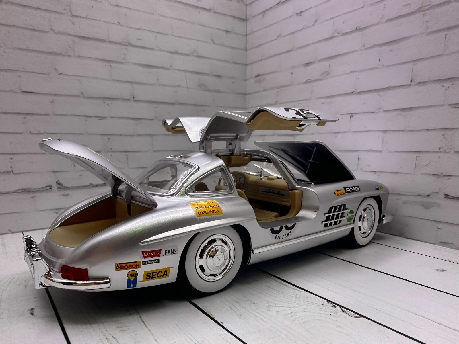 Машинка металлическая "Mercedes-Benz 300SE L раллийный серебристый, свет+звук инерционный/ в подарок брелок