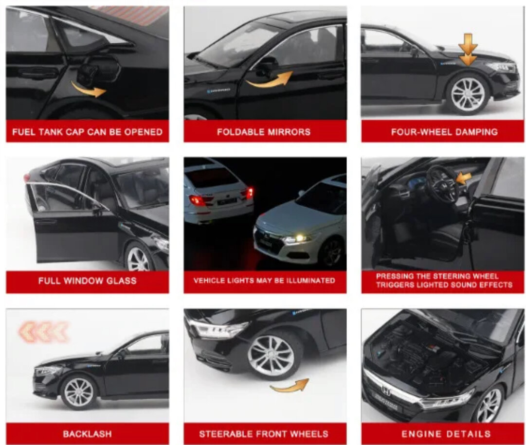 Коллекционная масштабная модель Honda Accord Sport Hybrid 1:24 (металл, свет, звук) интересное: