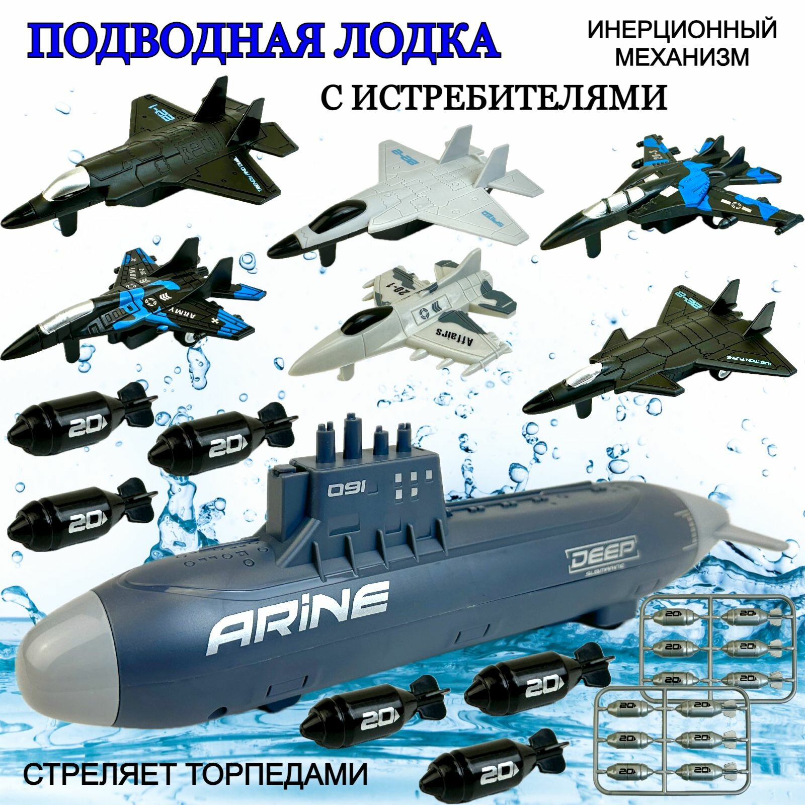Набор военной техники, подводная лодка инерционная стреляет торпедами, самолеты игрушки для мальчика, 41х27х7 см интересное: