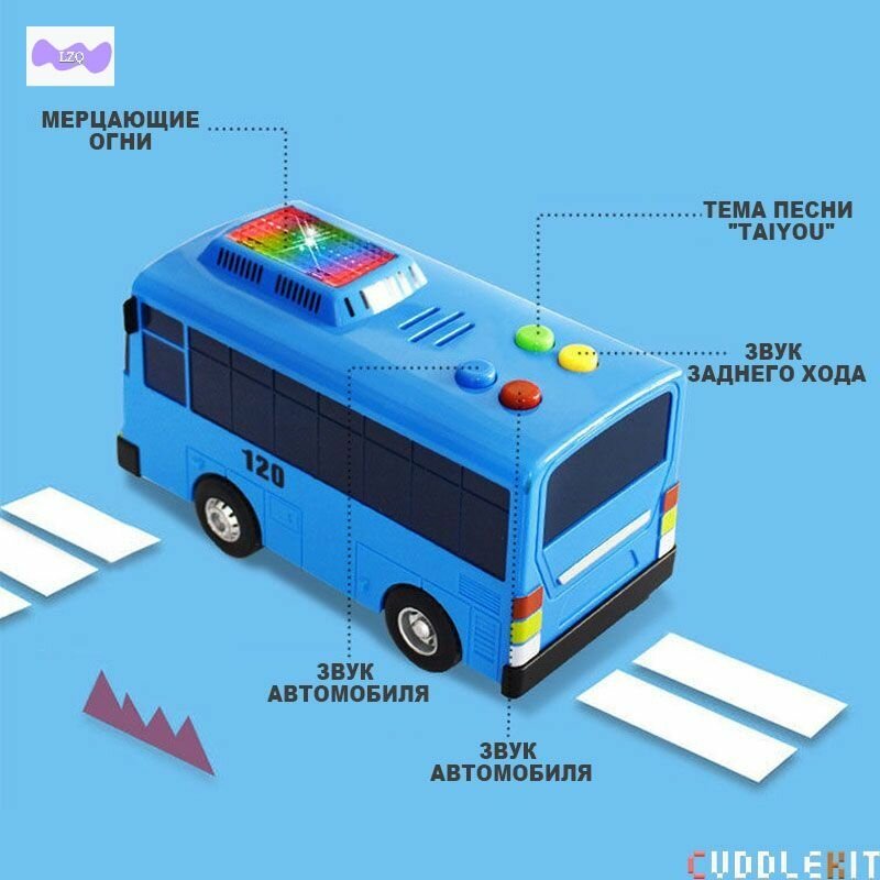 Купить Тайо - миниавтобус, игрушка с звуком и светом для детей, инерционный автобус, подарочная упаковка