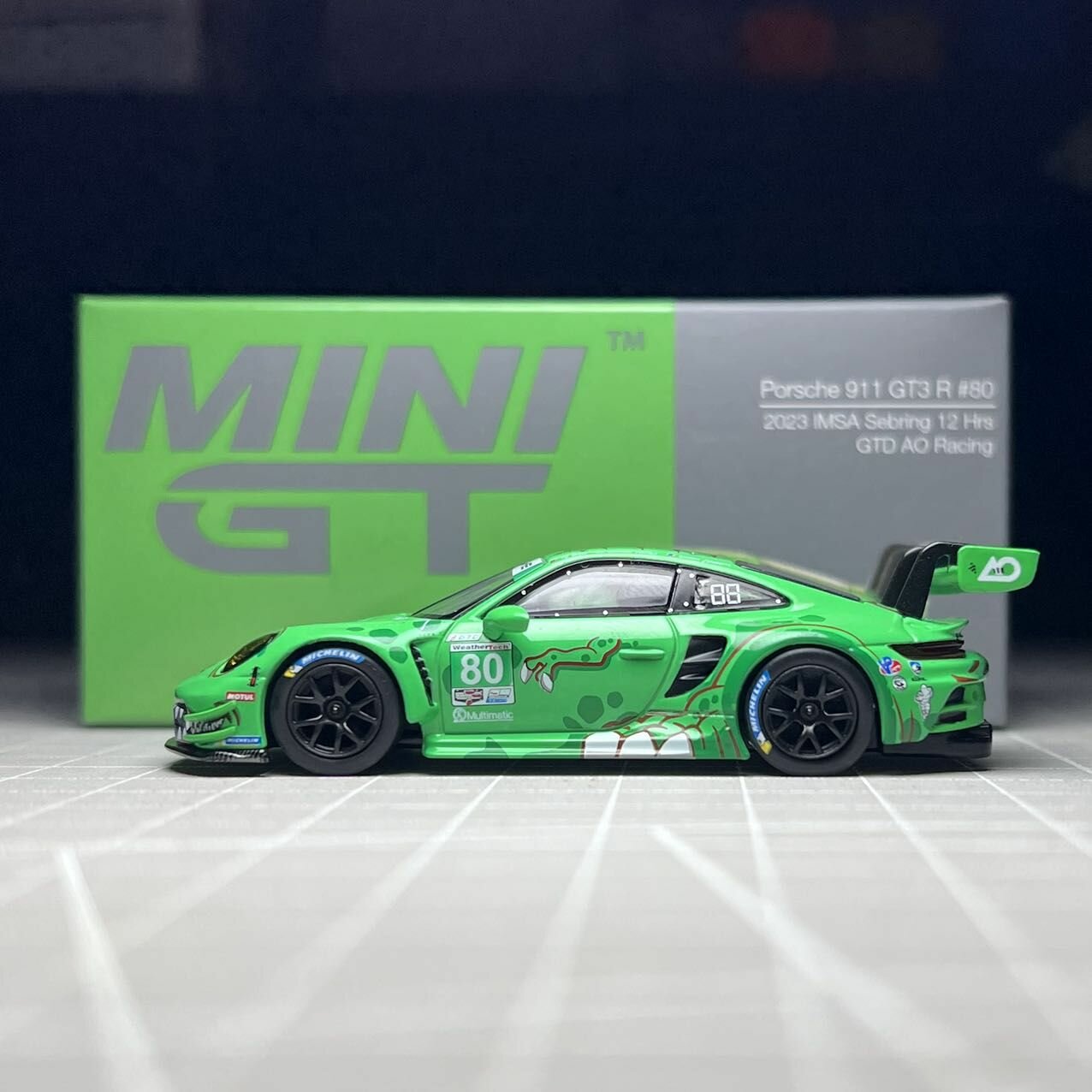 Машинка TSM MINI GT 1/64 Porsche 911 GT3 R 80 GTD AO Racing 2023 IMSA Sebring 12 Hrs # 713 Die-cast Alloy Car Model Collection Gift