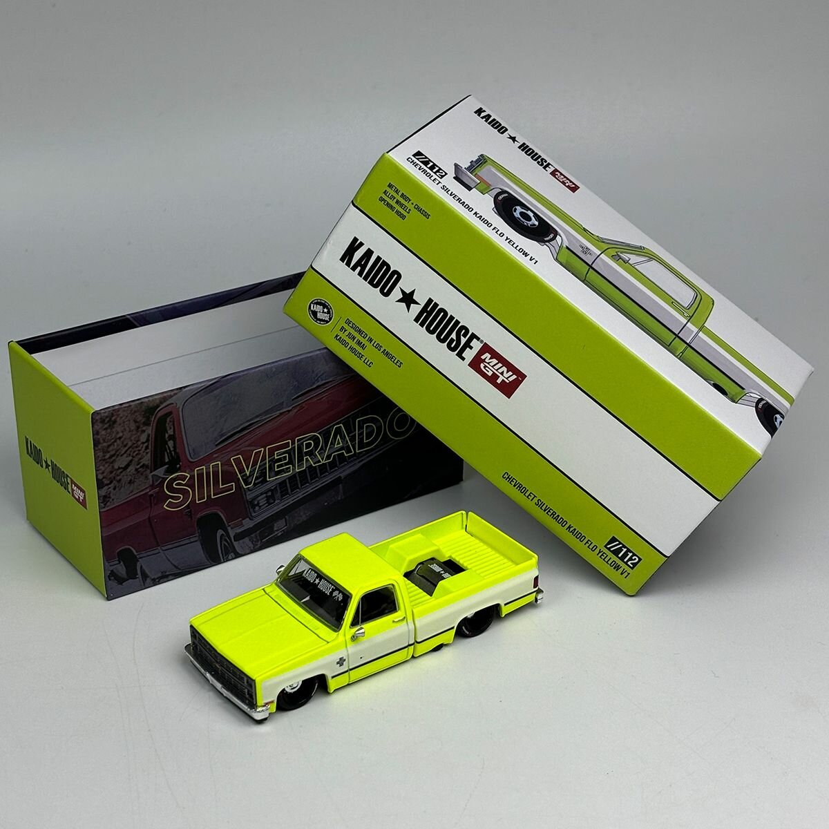 Купить Машинка KAIDO HOUSE Mini Gt 1/64 KHMG112 Chevy Silverado Kaido Flo Yellow V1 Die-cast Alloy Car Model Collection Gift