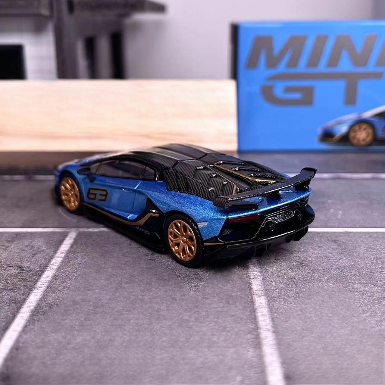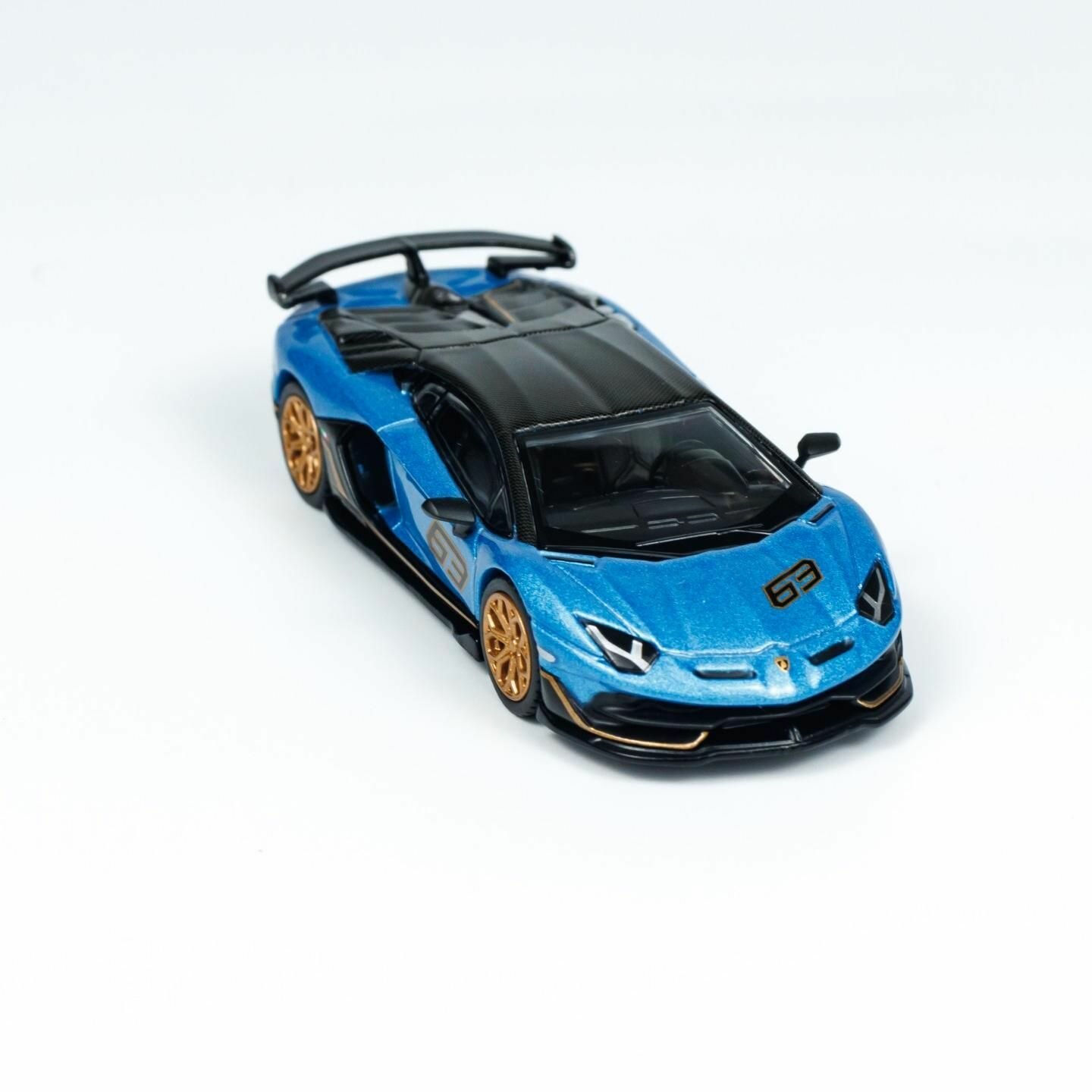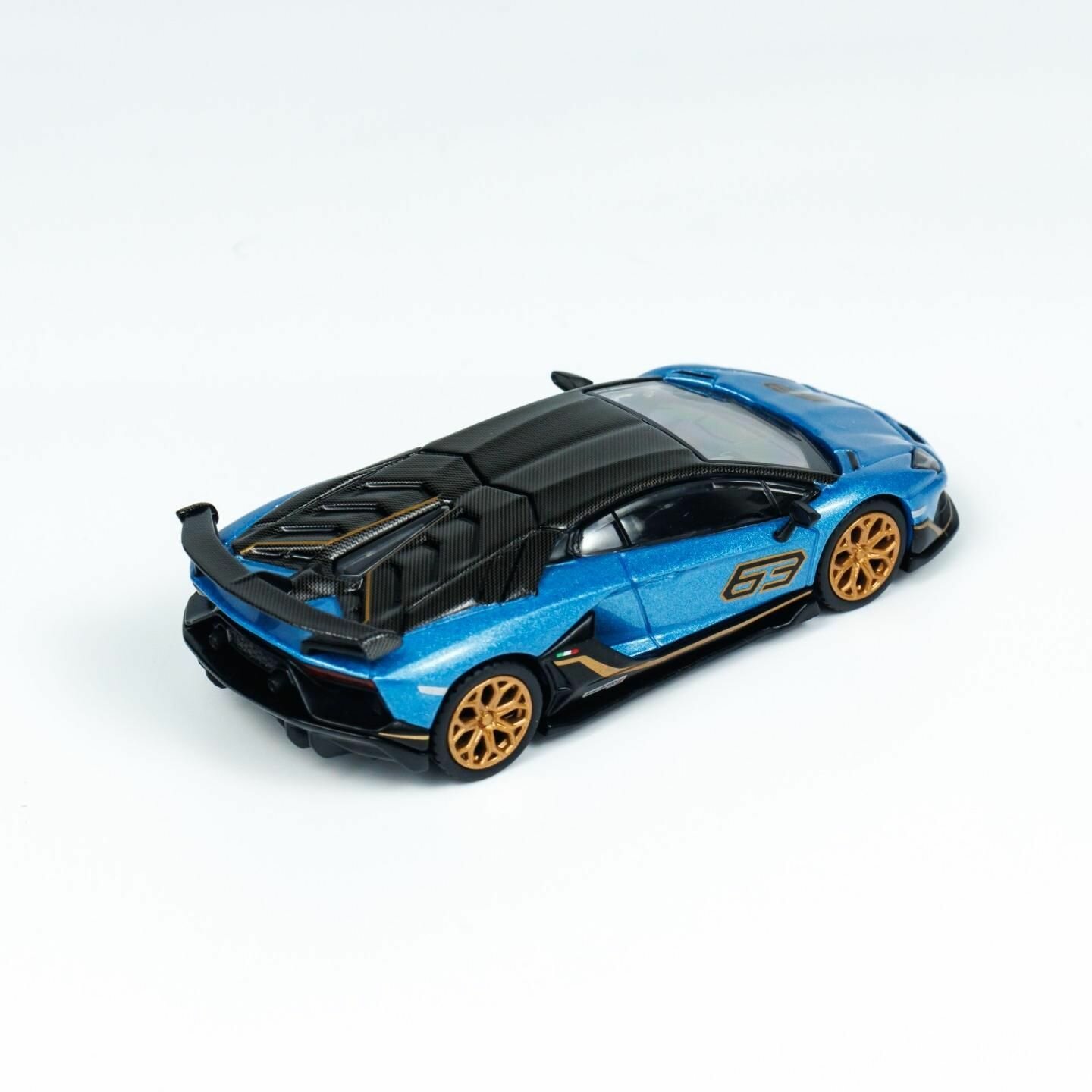 Купить Машинка TSM Mini GT 1/64 #784 Lamborghini Aventador SVJ 63 Blu Aegir Модель автомобиля из сплава Коллекция подарк игрушк