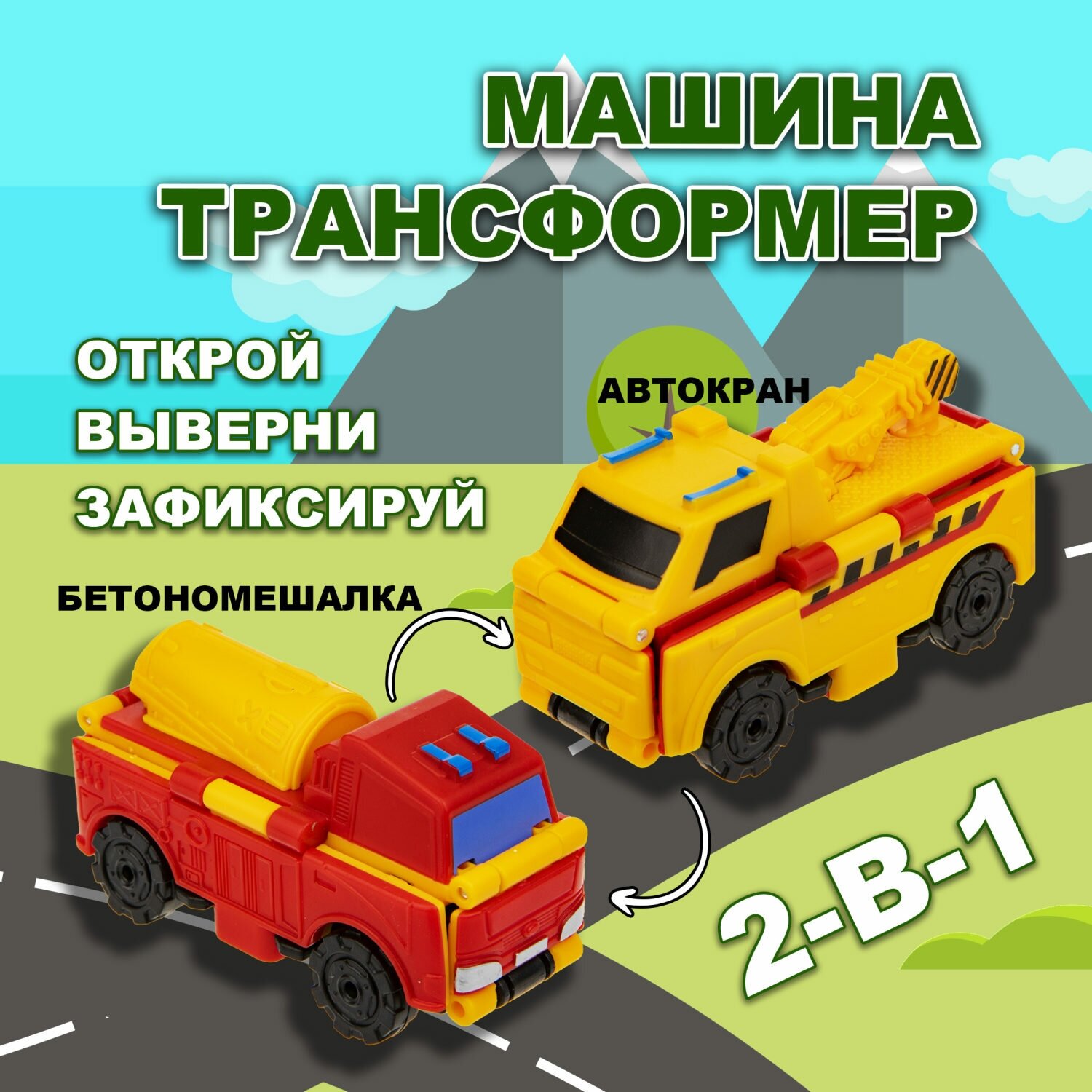 Купить Машинка 1toy Transcar Double Автокран – Бетономешалка, 8 см, блистер