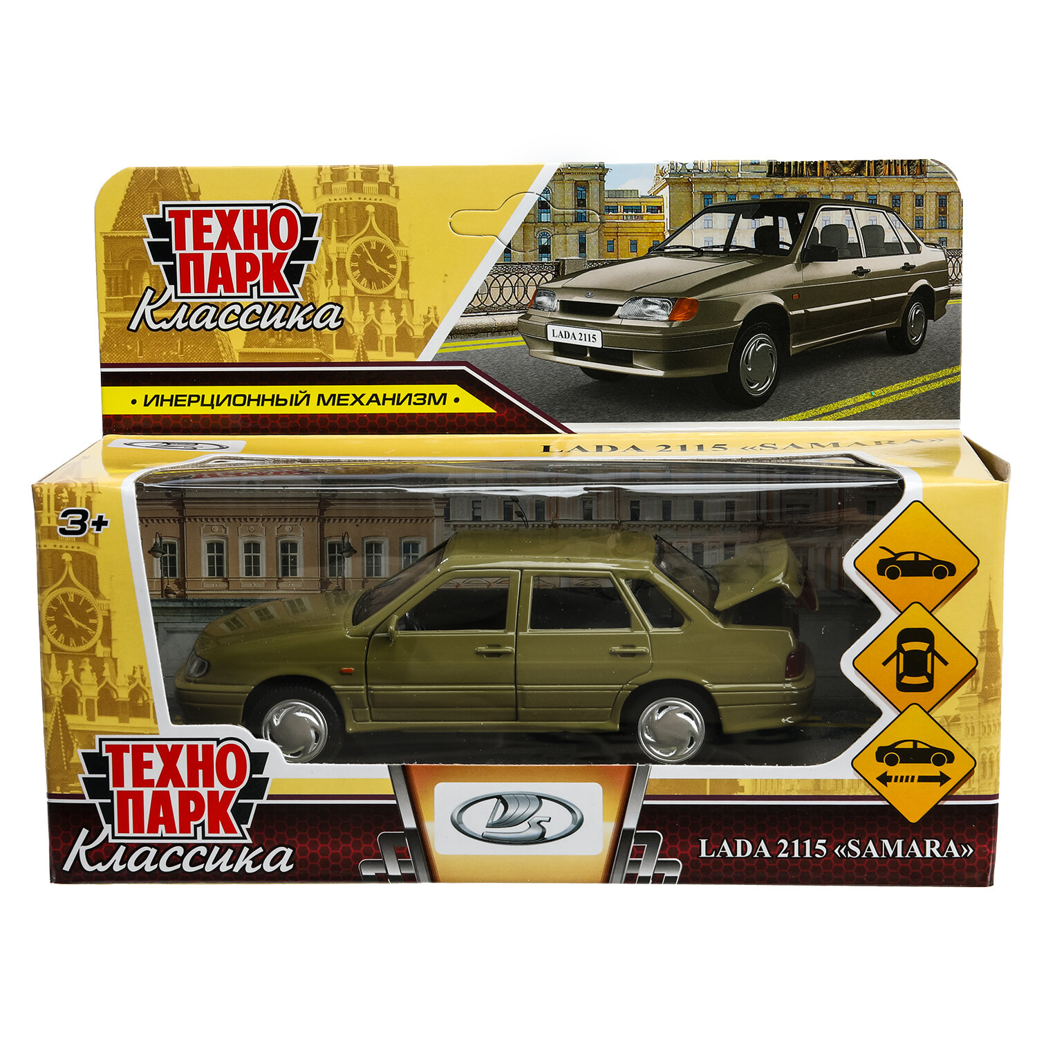 СохранитьМашинка для мальчика металлическая Lada-2115 Самара 12 см, серо-зеленый, Технопарк интересное: