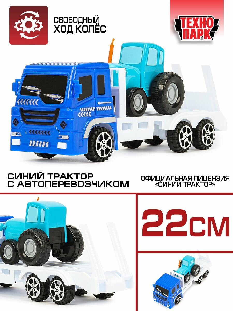 Купить Машинка для мальчика металлическая Синий Трактор 7,5 см с автоперевозчиком 21,5 см Технопарк
