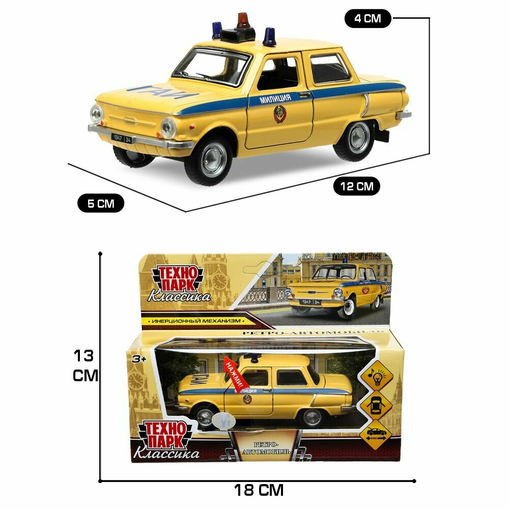 Купить Машинка металлическая для мальчика Запорожец ЗАЗ 968А милиция Ретро-модель 12 см, Технопарк