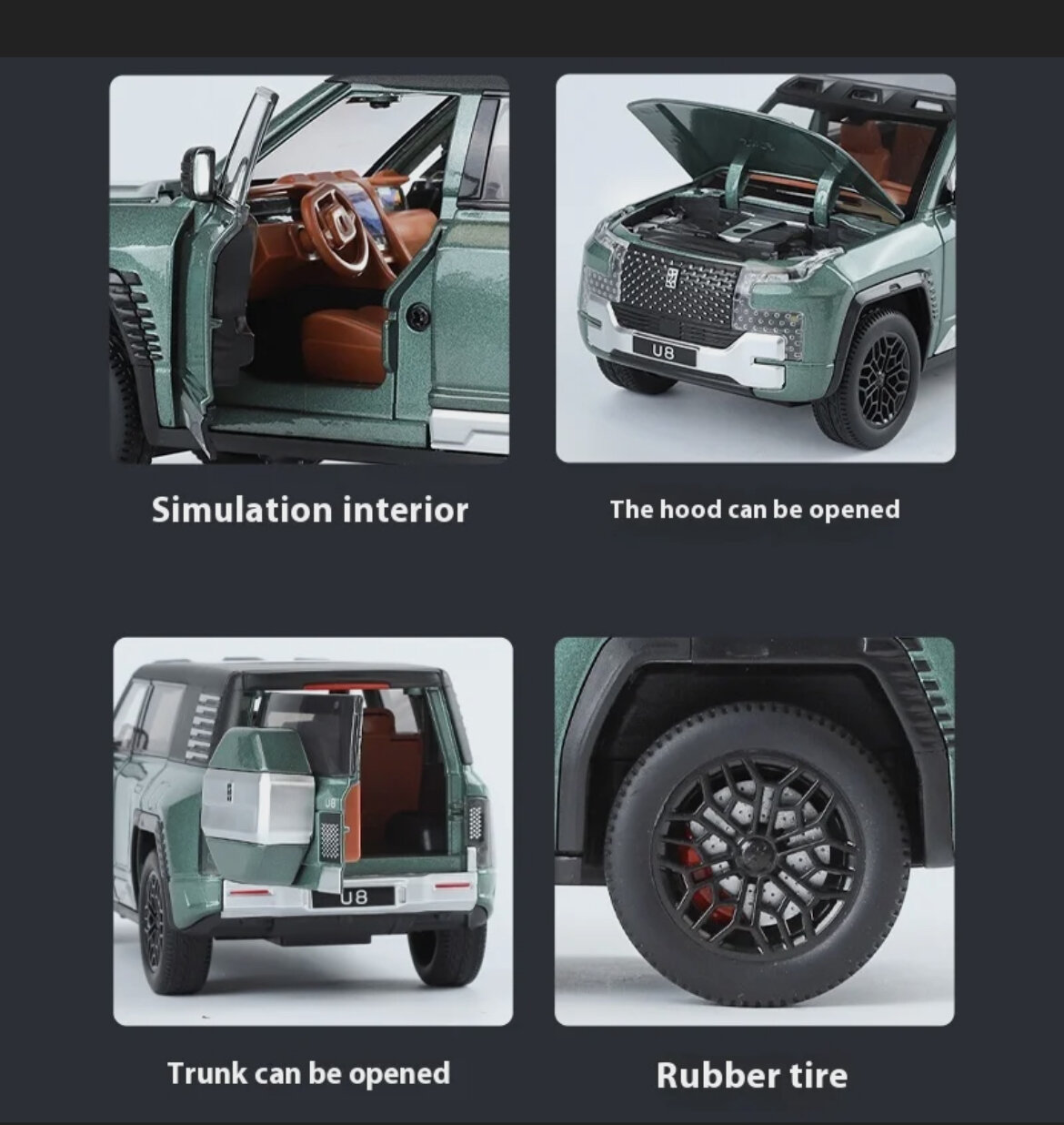 Коллекционная масштабная модель YangWang U8 1:24 (металл, свет, звук) интересное: