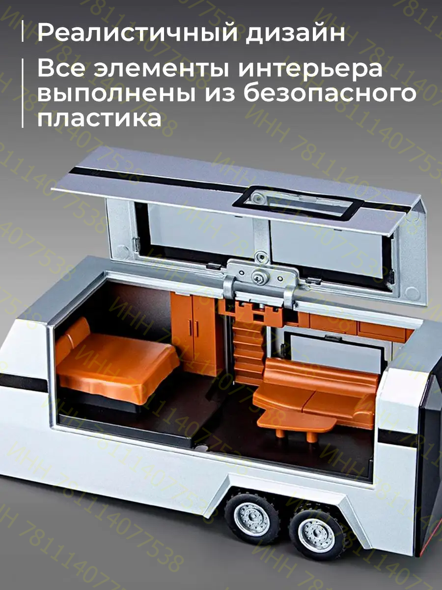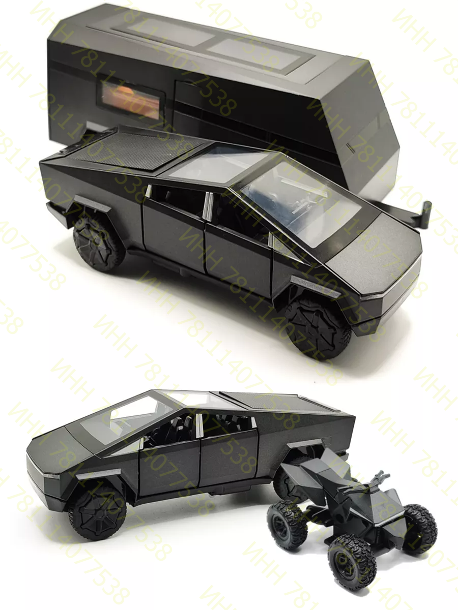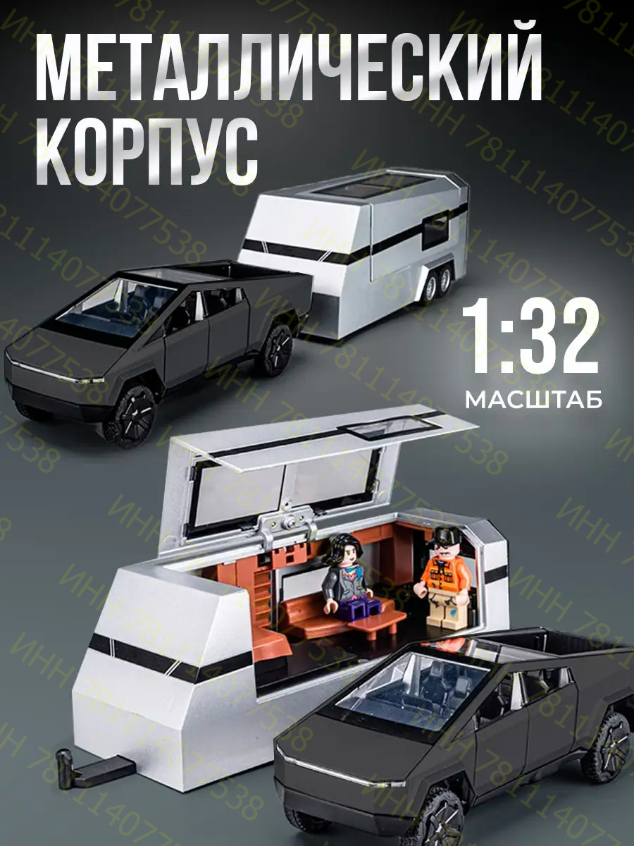 Машинка-кемпинг с квадроциклом Тесла Кибертрак 23 см металлическая инерционная, со световыми и звуковыми эффектами, темно-серый