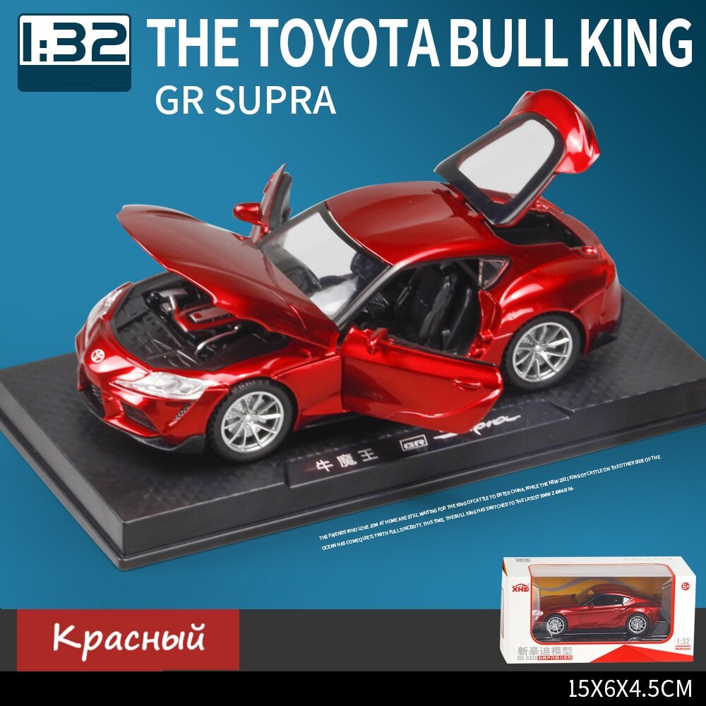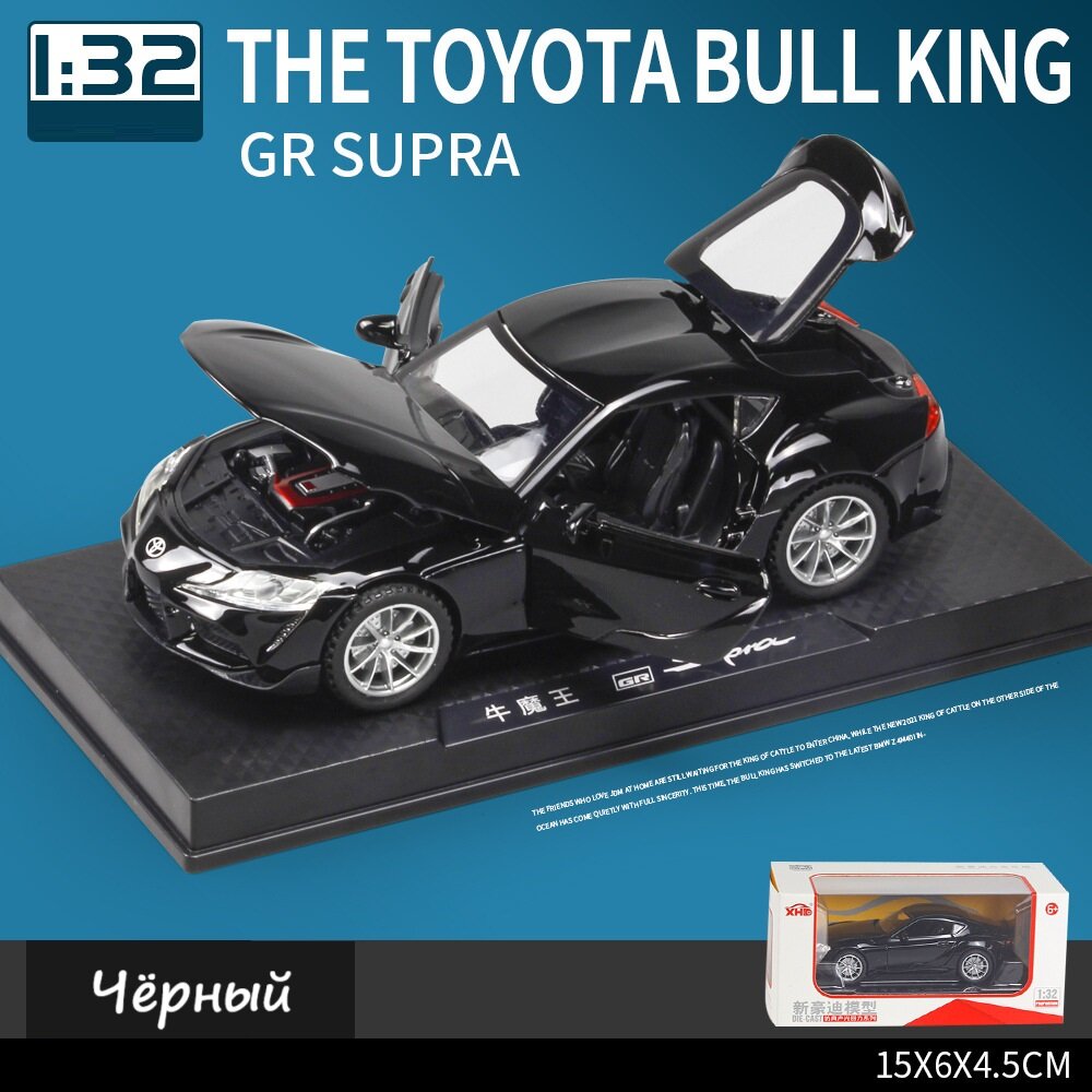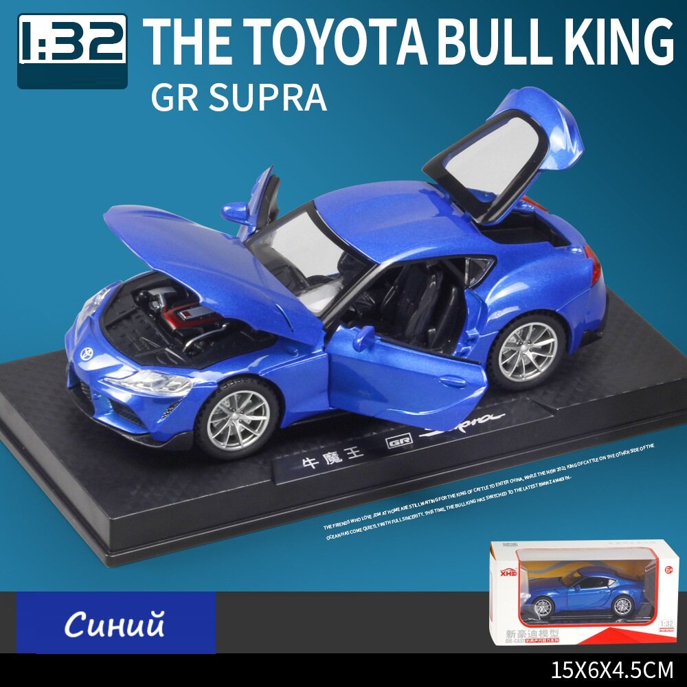 Купить Коллекционная машинка 1:32 Toyota GR SUPRA синяя, открывавшиеся двери, капот, багажник, свет фар