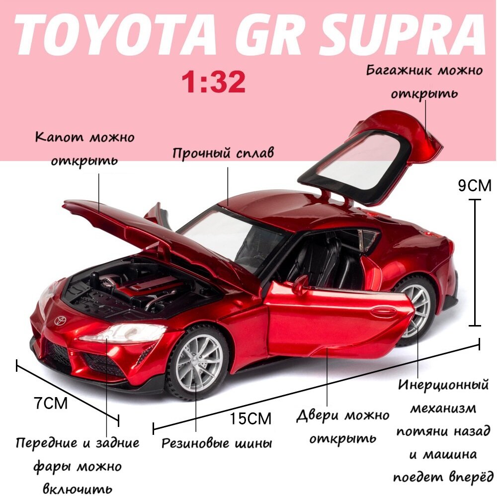 СохранитьКоллекционная машинка 1:32 Toyota GR SUPRA синяя, открывавшиеся двери, капот, багажник, свет фар интересное: