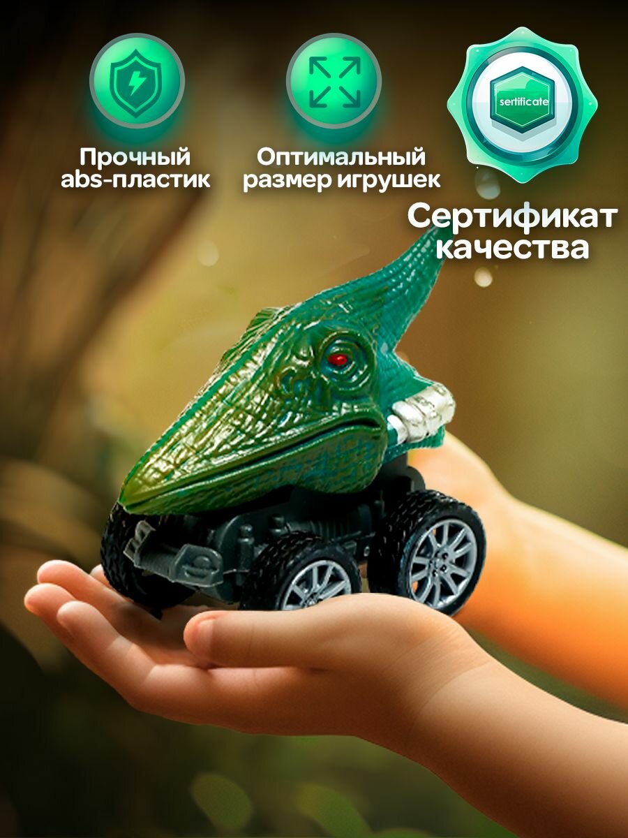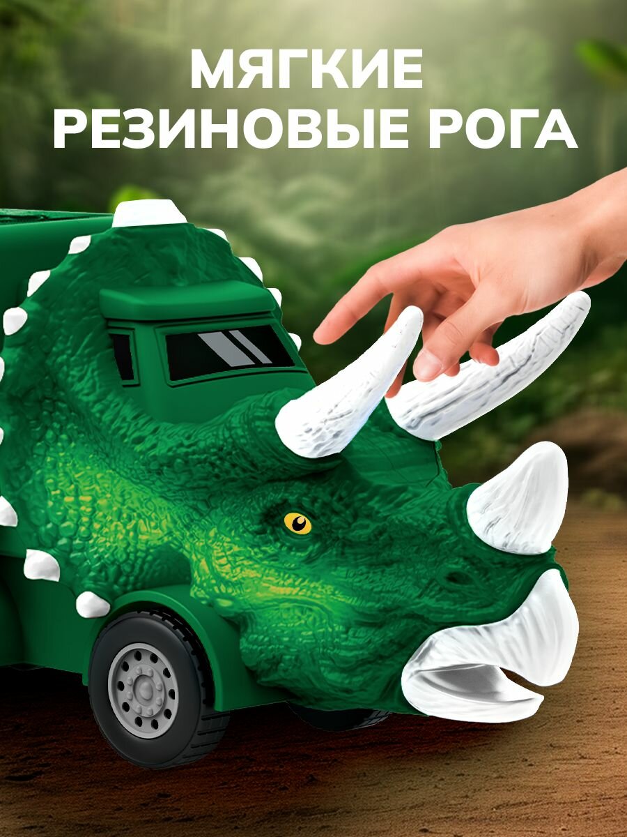 | Комплектация | Автовоз - 1 шт., дино машинки - 3 шт., фигурки динозавров - 3 шт. (приходят рандомно), аксессуары |