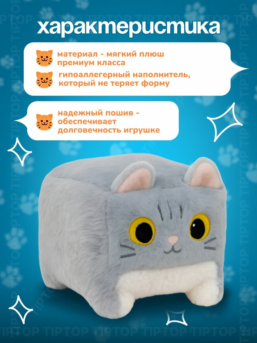 СохранитьМягкая игрушка котокуб кот куб квадратный подушка серый 20см интересное: