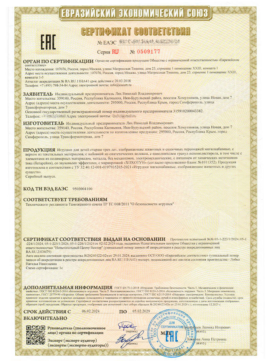 | Материал | искусственный мех, плюш, Холлофайбер |