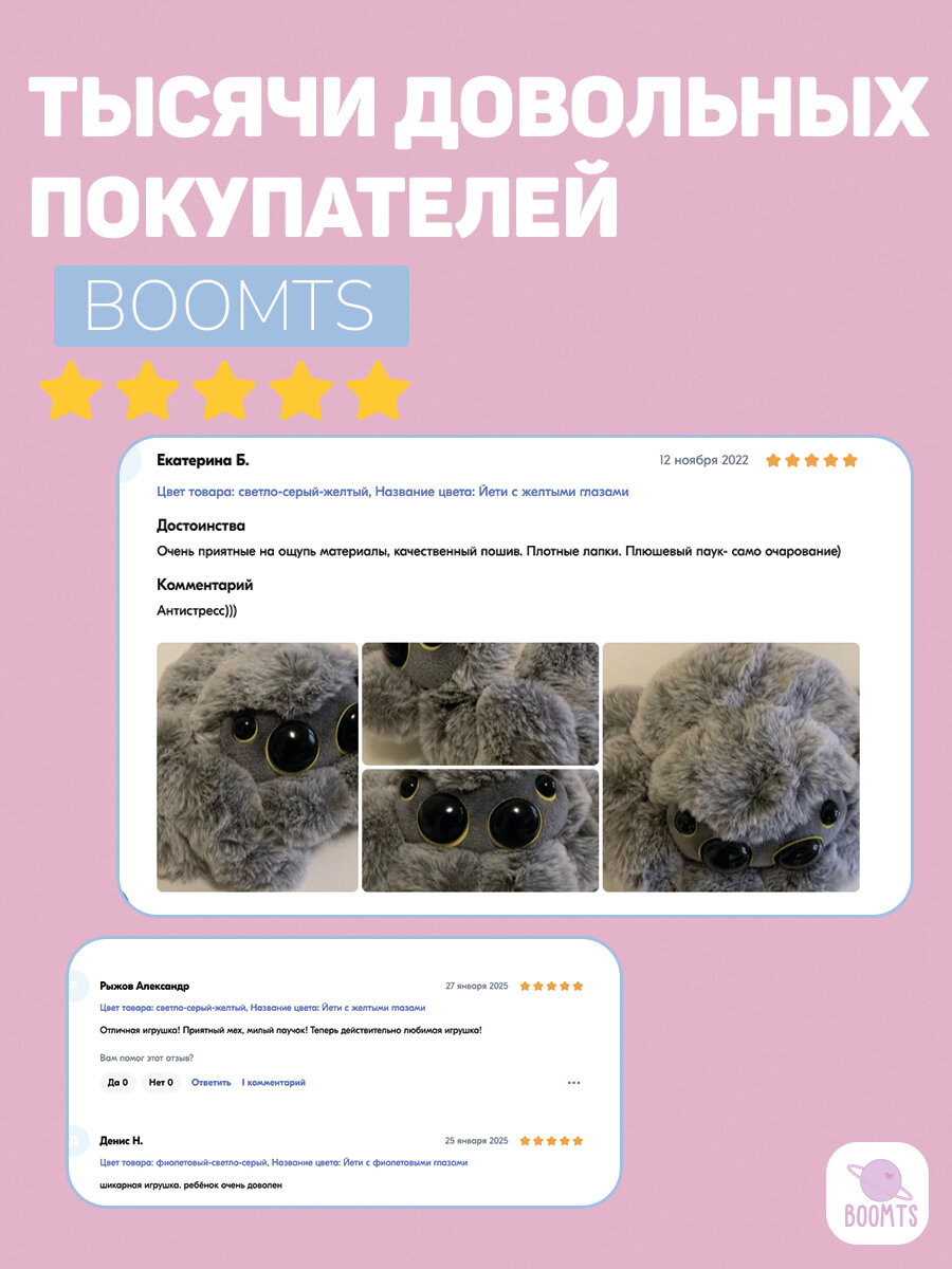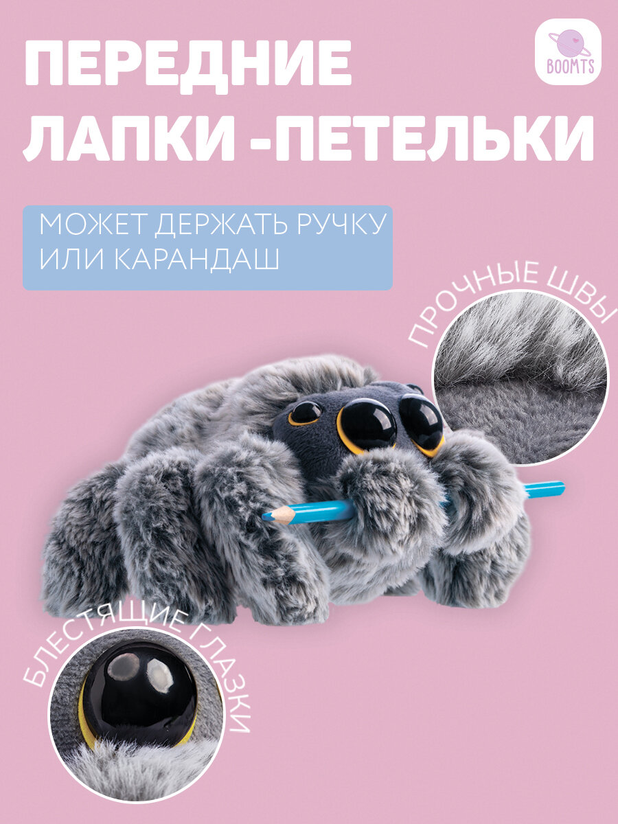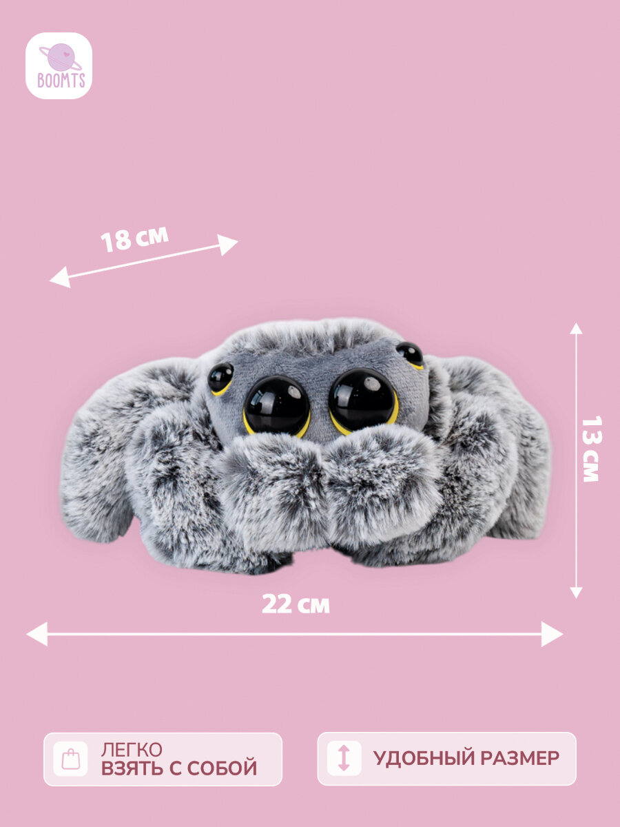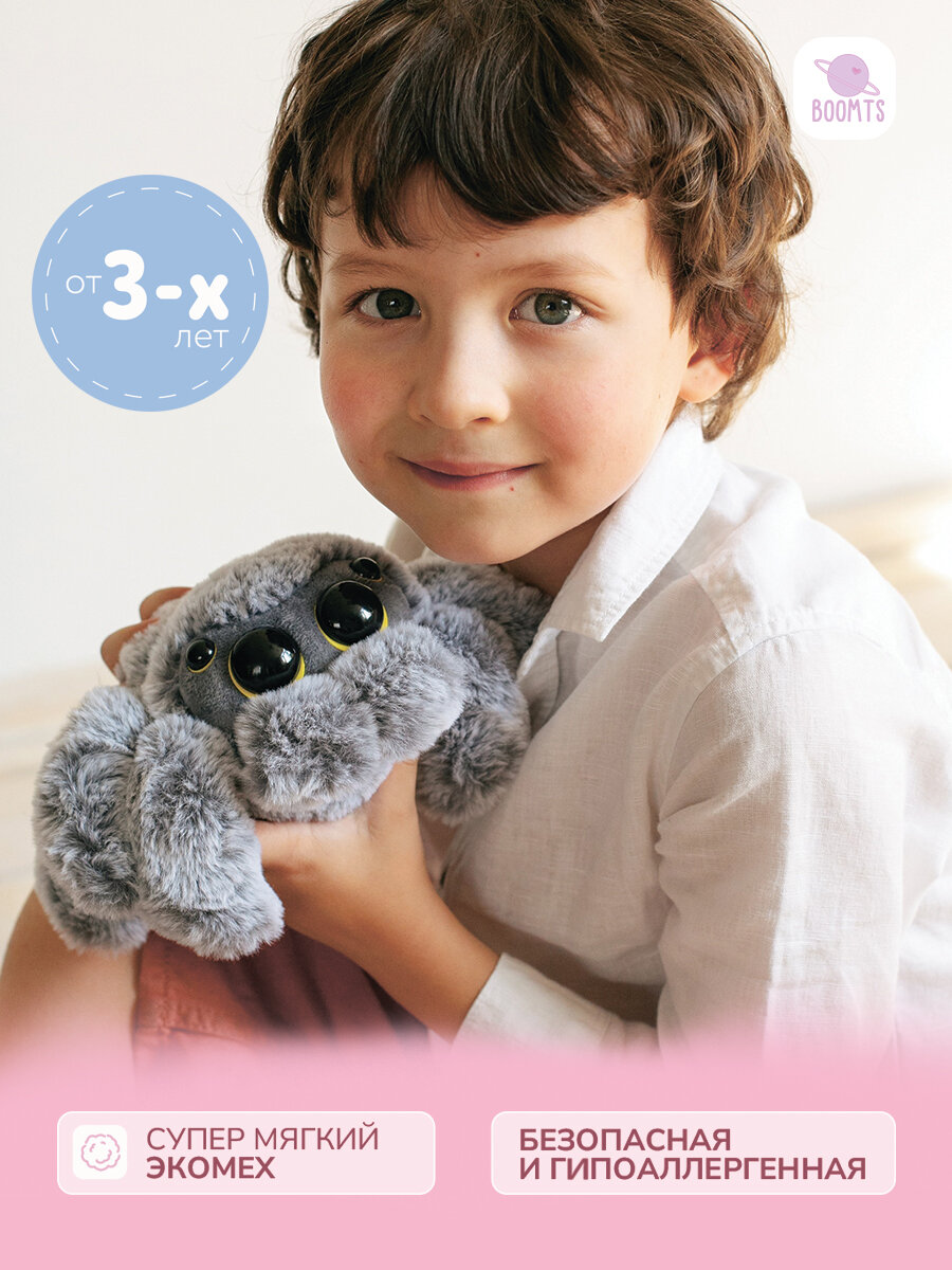 Мягкая игрушка паук BOOMTS "Павучок Йети" с жёлтыми глазами в подарок мальчику, девочке интересное: