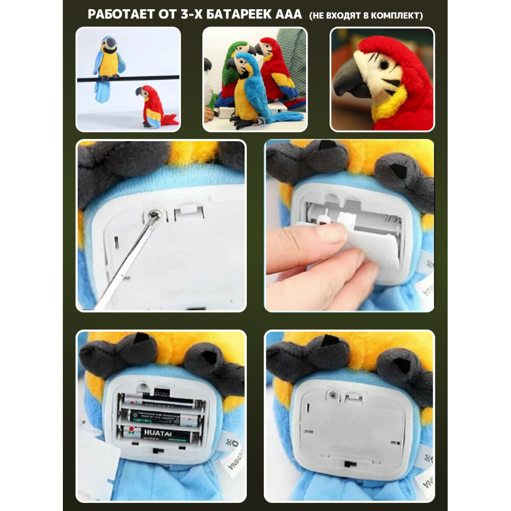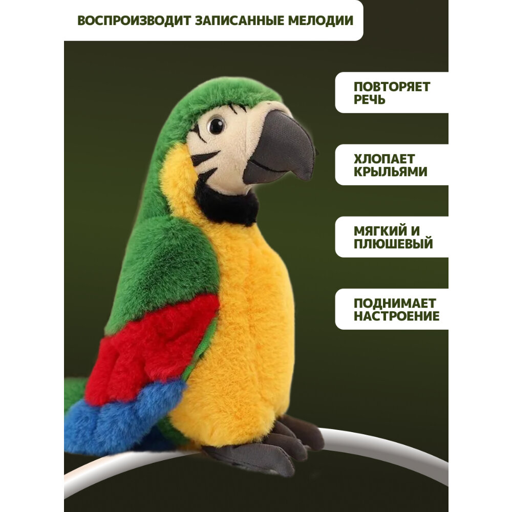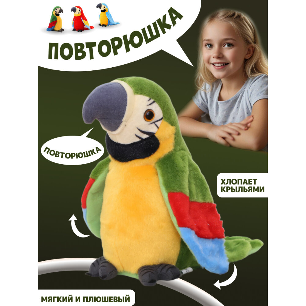Игрушка повторюшка говорящая Попугай 22 х 13 х 20 см, 3 цвета интересное: