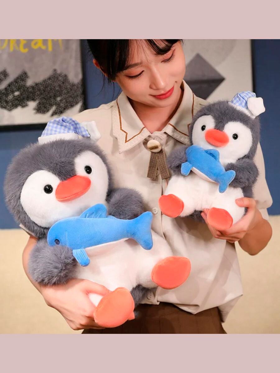 Мягкая Игрушка для обниманий - пингвин с акулой. 25 см. интересное:
