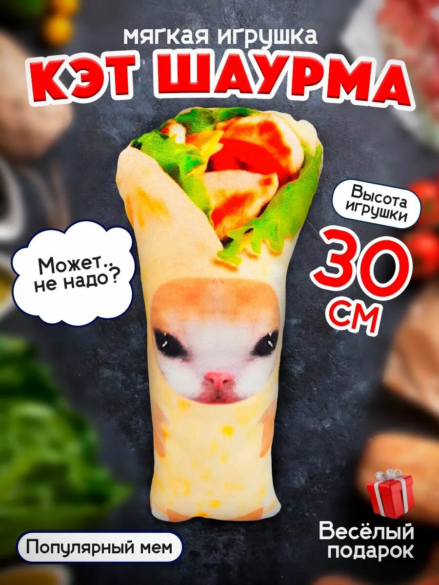 Купить Мягкая игрушка мем Кот Шаурма 30 см / Смешной подарок мем на день рождения