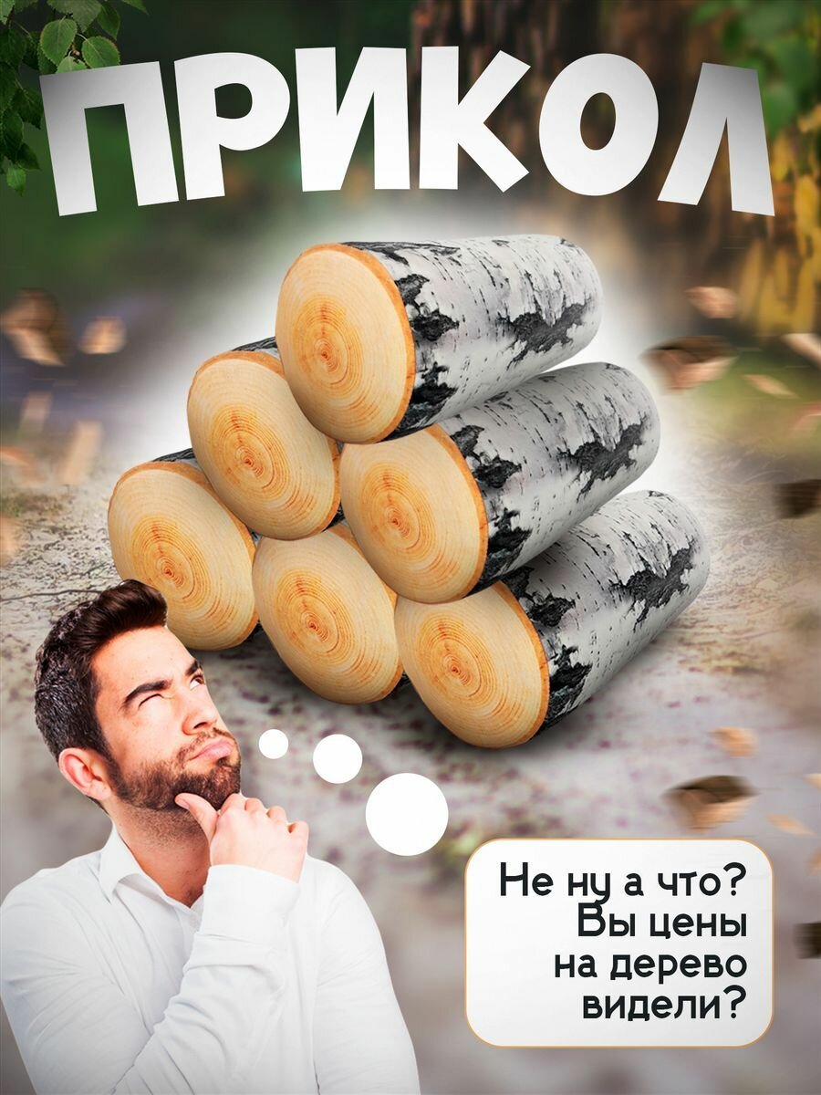 СохранитьМягкая игрушка Полено Березовое бревно 35 см / Подушка обнимашка для сна, прикольный подарок для мужчин интересное: