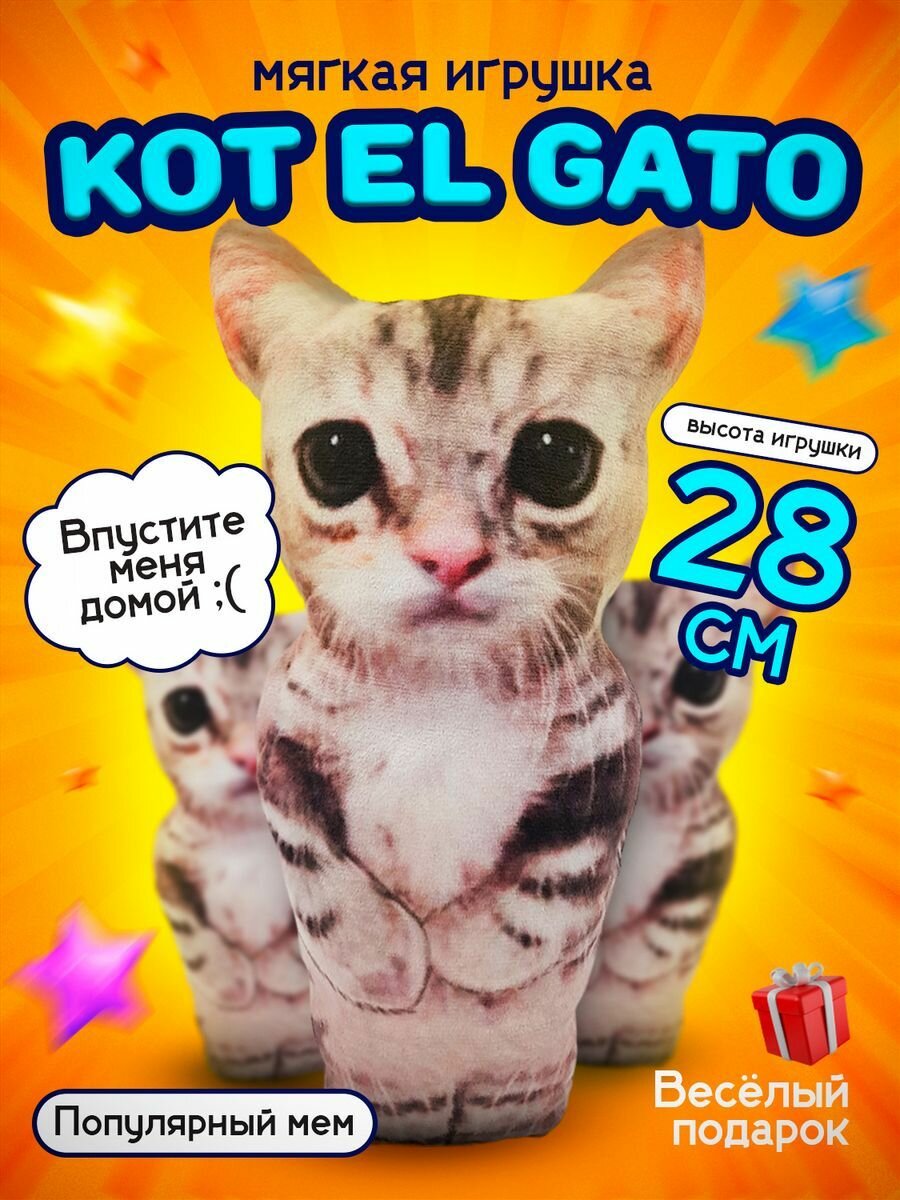 Мягкая игрушка Кот мем эльгато El Gato / 28 см / Смешной подарок мем на день рождения