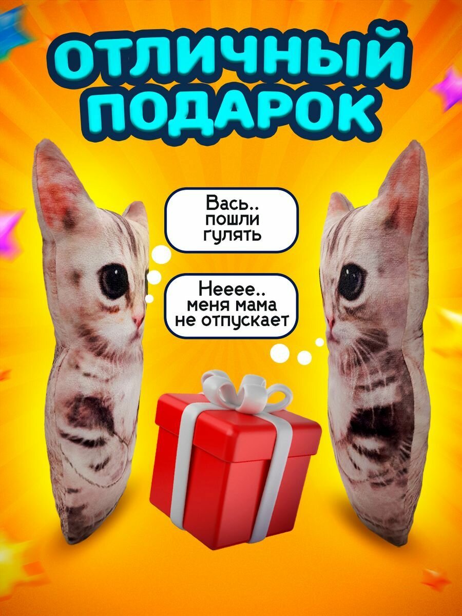 Мягкая игрушка большой Кот мем эльгато / 40 см эль гато / Смешной подарок мем на день рождения