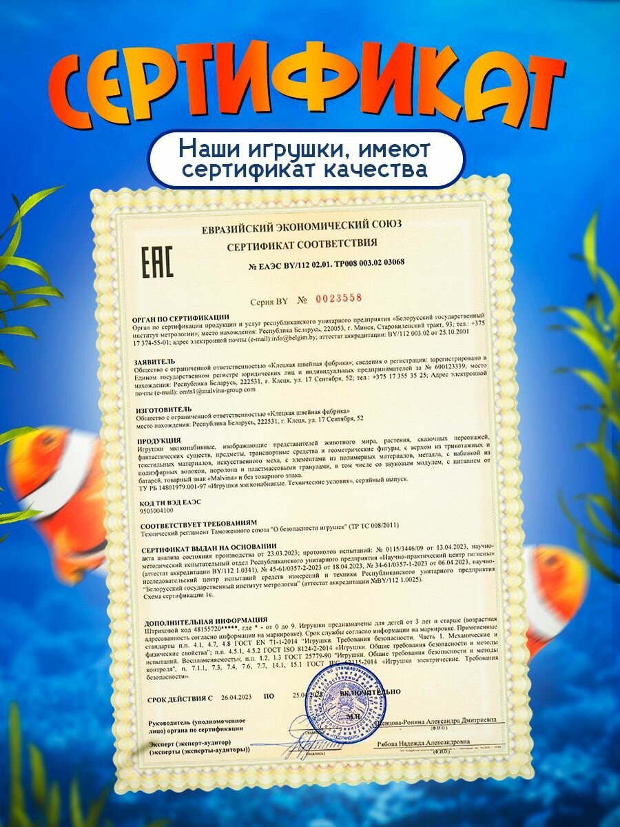 Мягкая игрушка Malvina "Карп", искусственный мех, наполнитель полиэфирное волокно