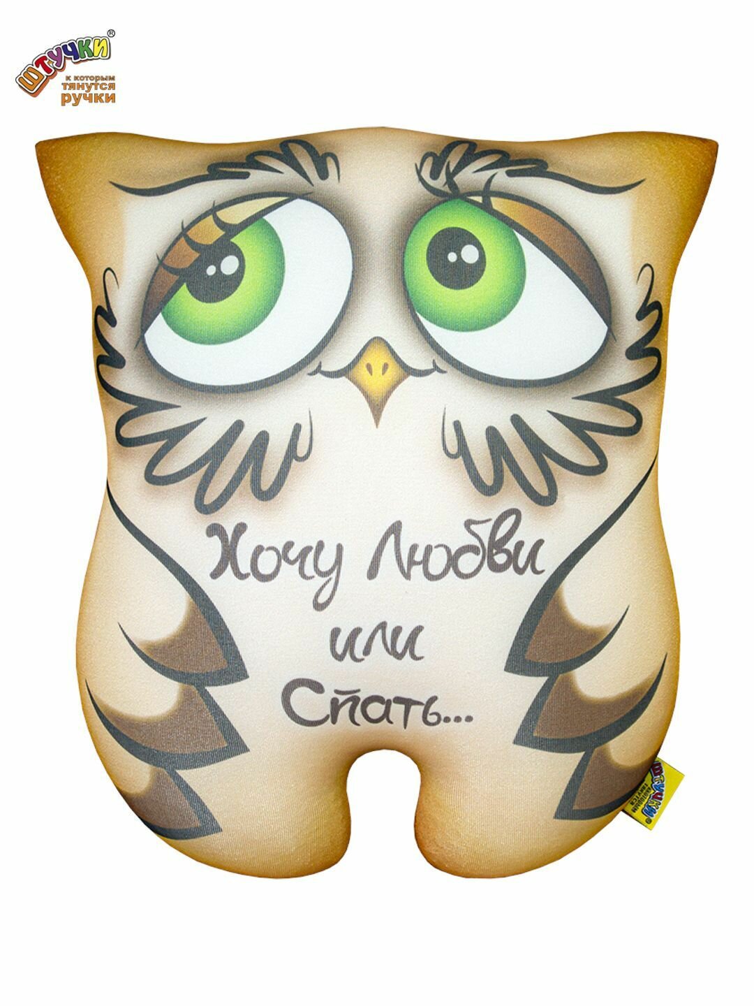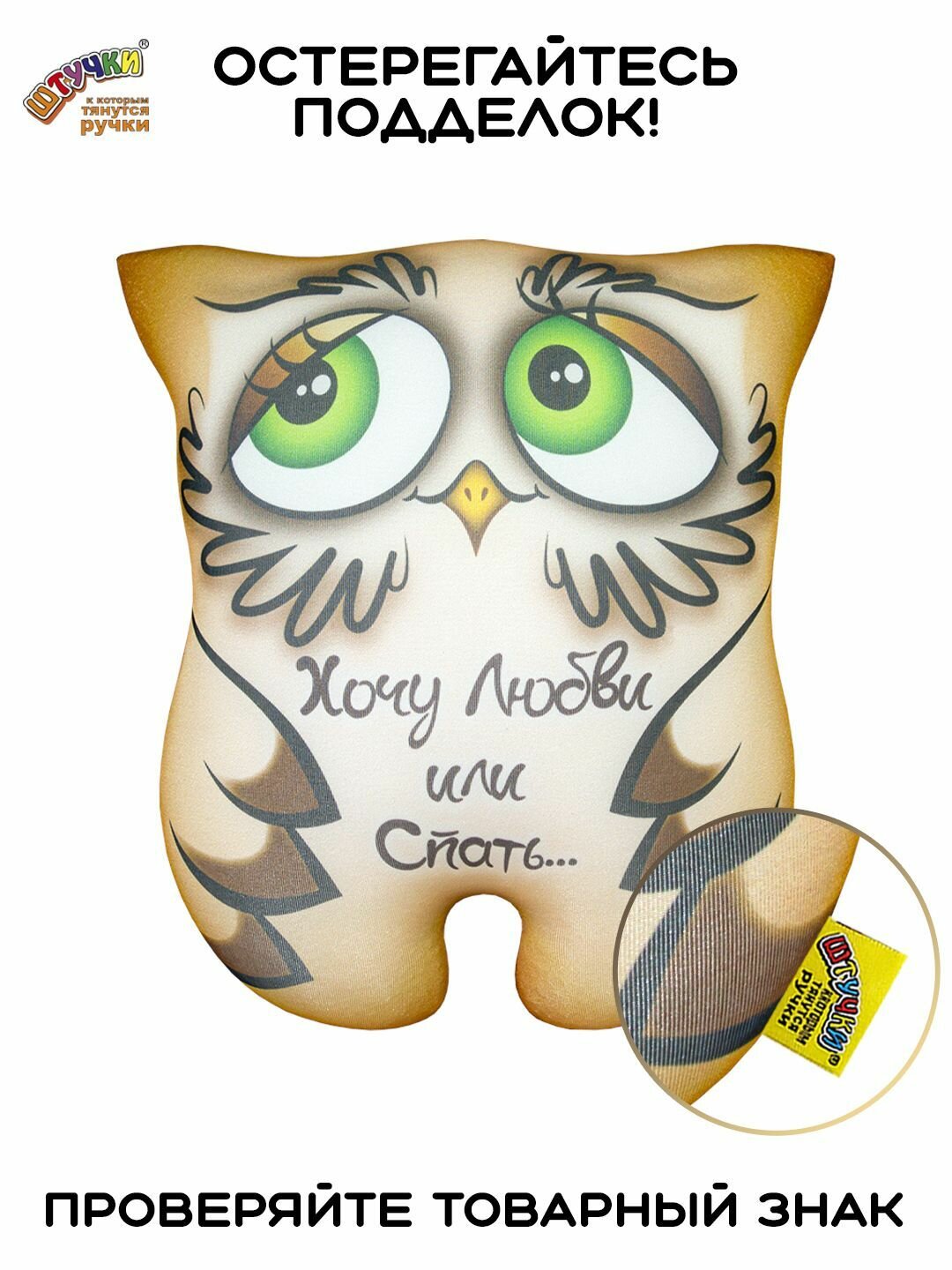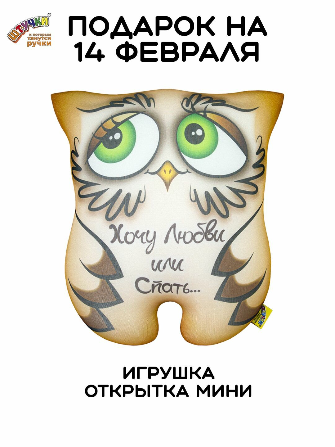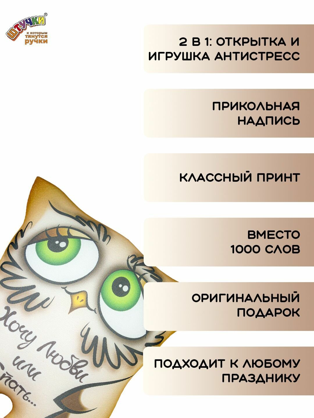 Штучки, к которым тянутся ручки/ Мягкая игрушка-открытка антистресс Совушка "Хочу любви", 26х26 см