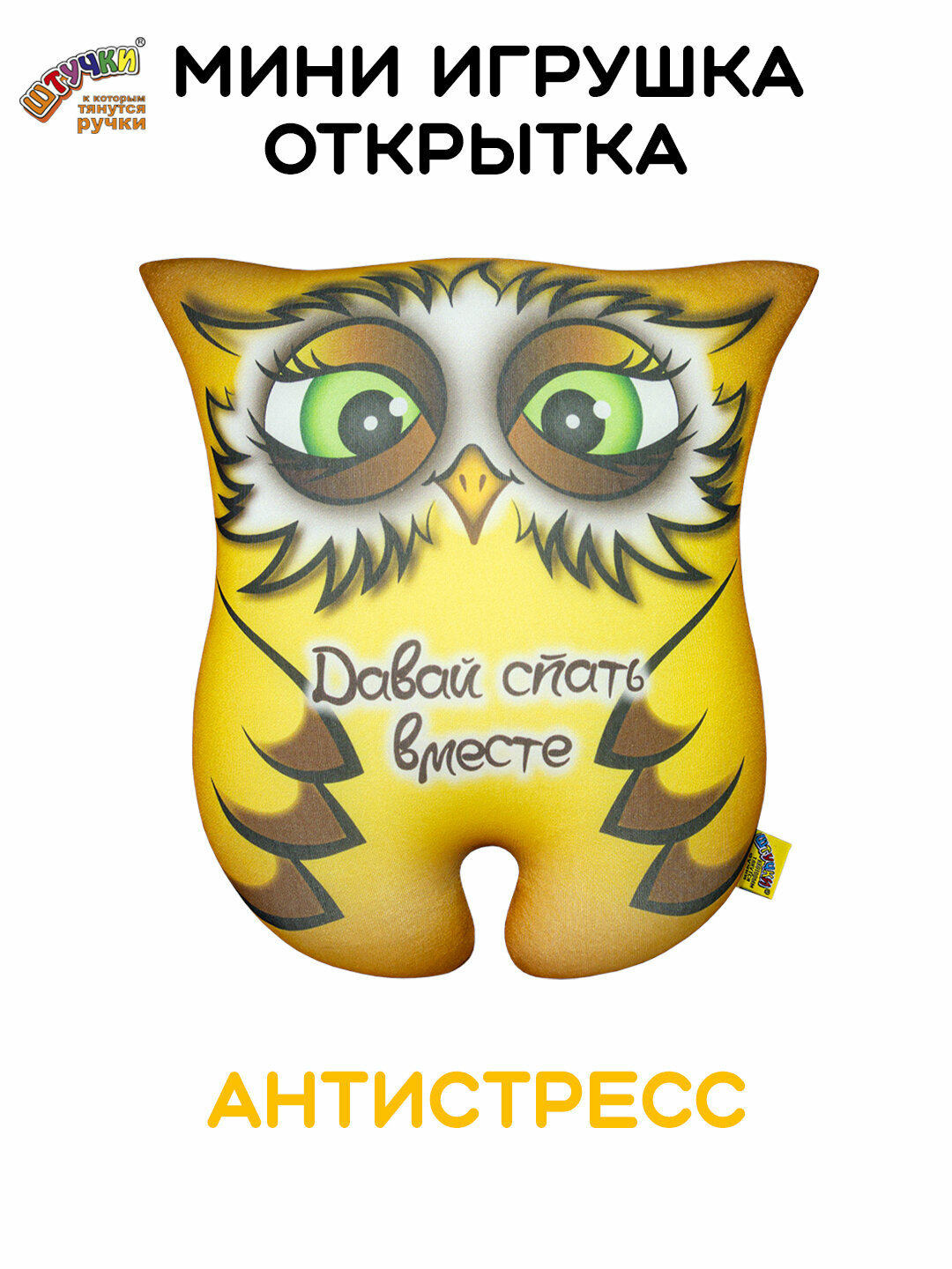 Штучки, к которым тянутся ручки/ Мягкая игрушка-открытка антистресс Совушка "Давай спать", 26х26 см
