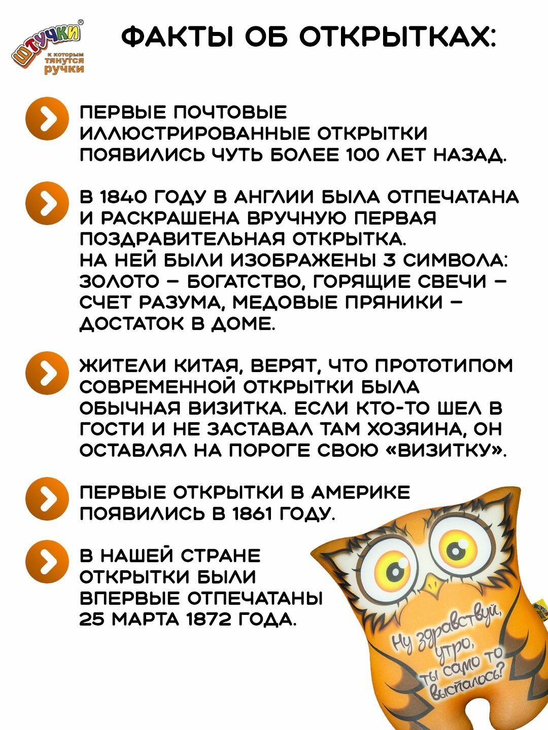 СохранитьШтучки, к которым тянутся ручки/ Мягкая игрушка-открытка антистресс Совушка "Здравствуй, утро", 26х26 см интересное: